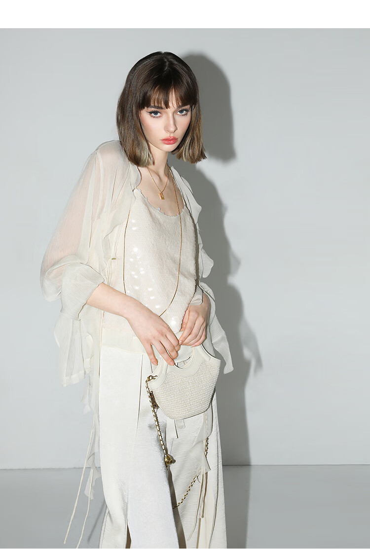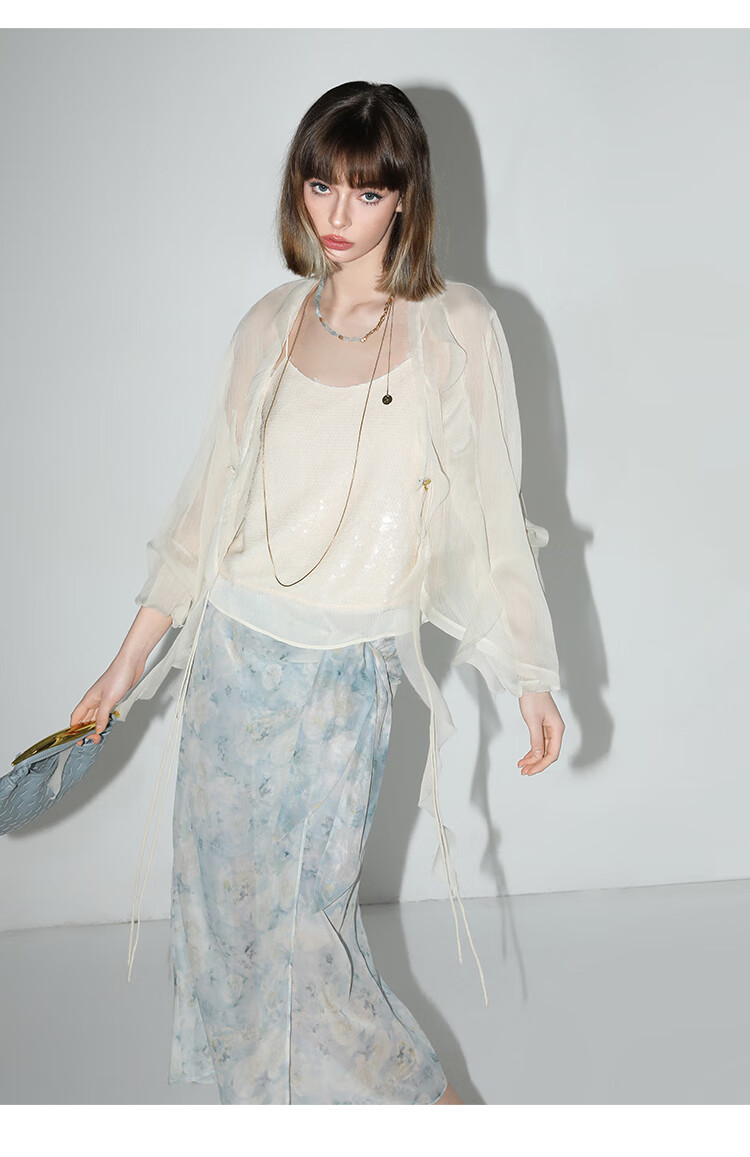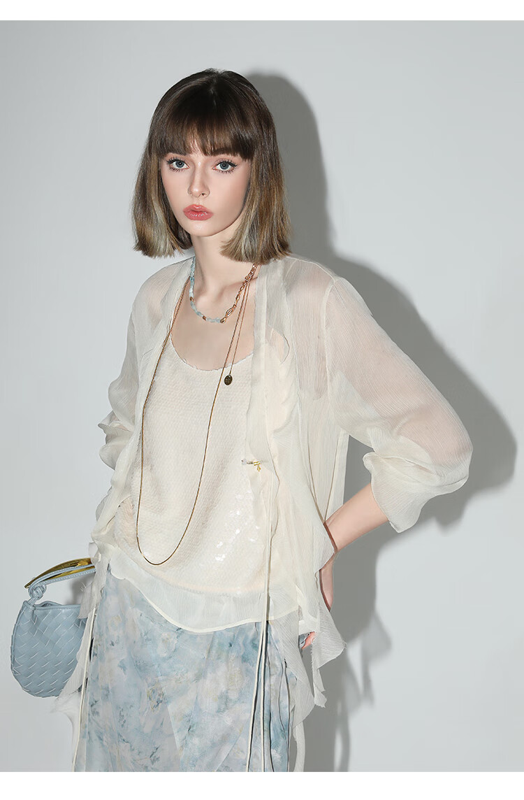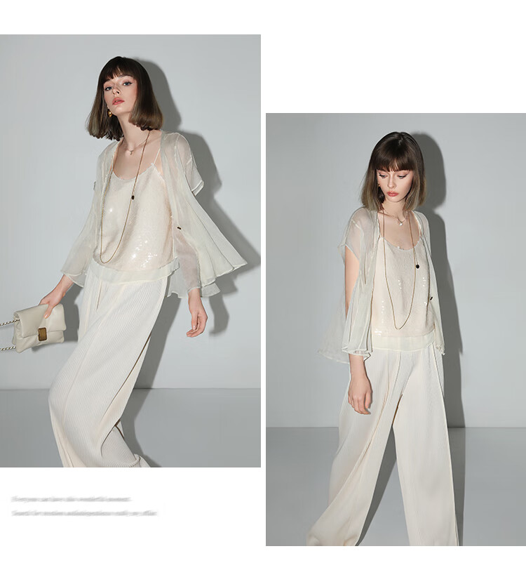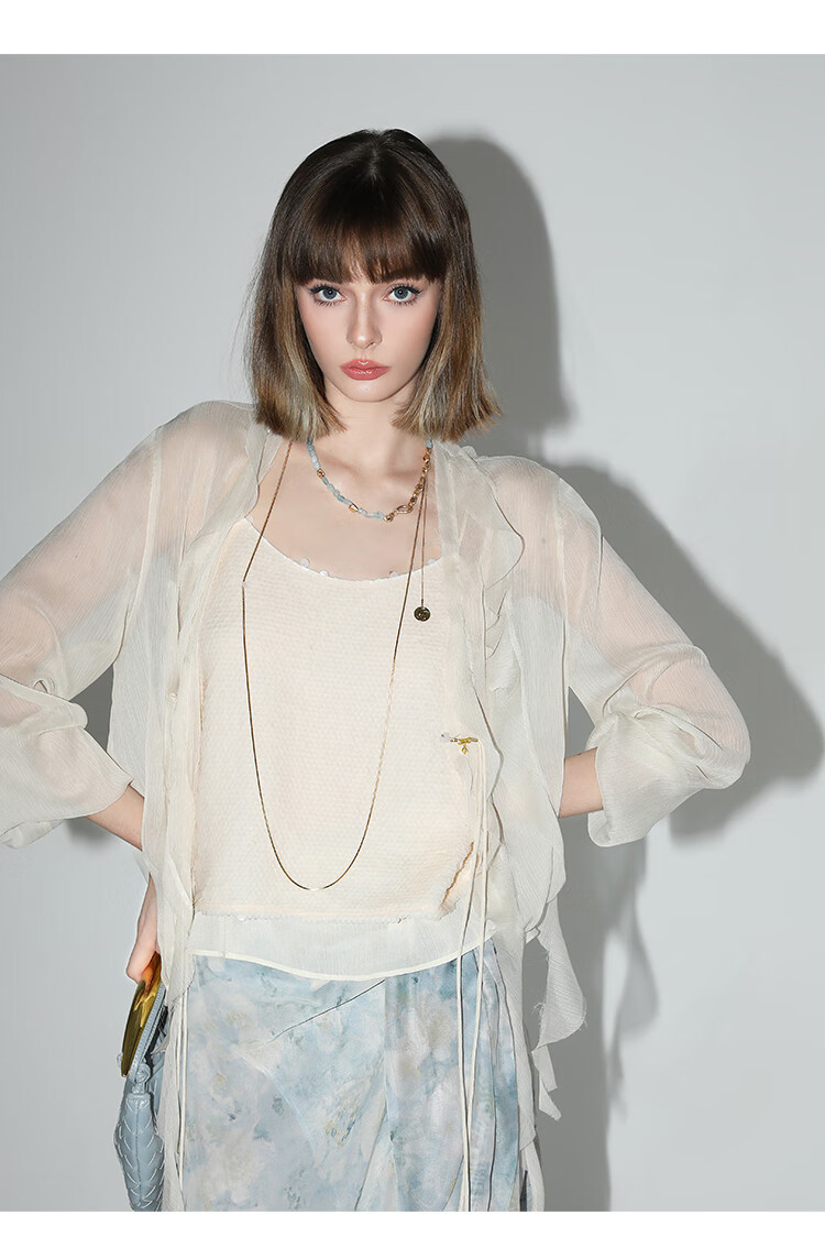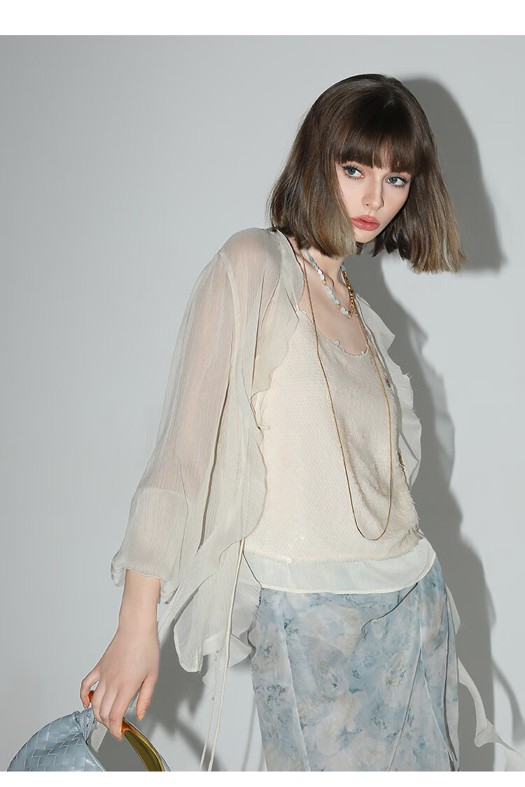 COCOBELLA亮片绣拼接双层雪纺吊带内搭可外穿气质背心VT0005