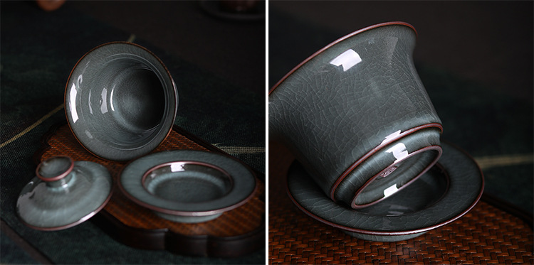 龙泉青瓷 紫口铁胎茶具
