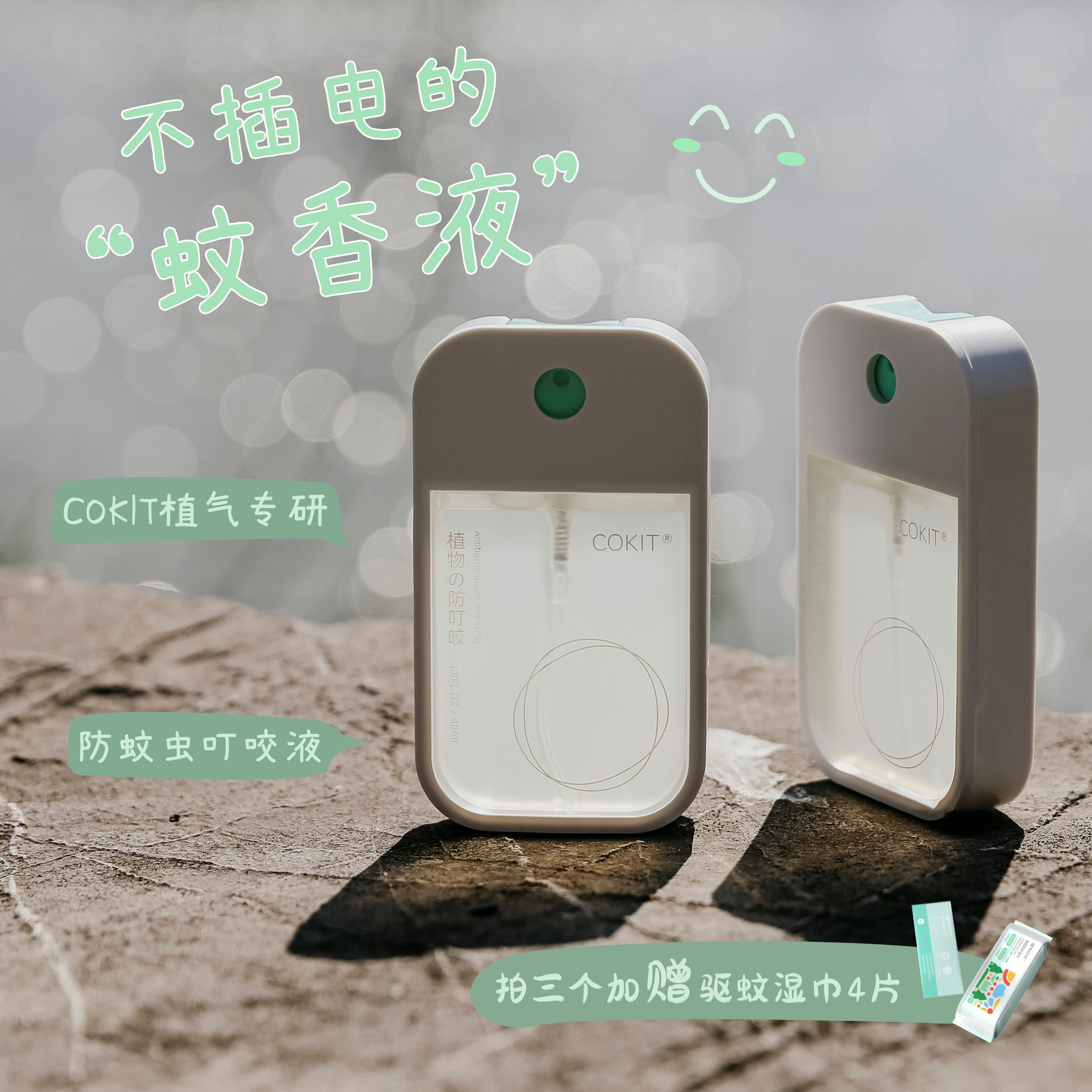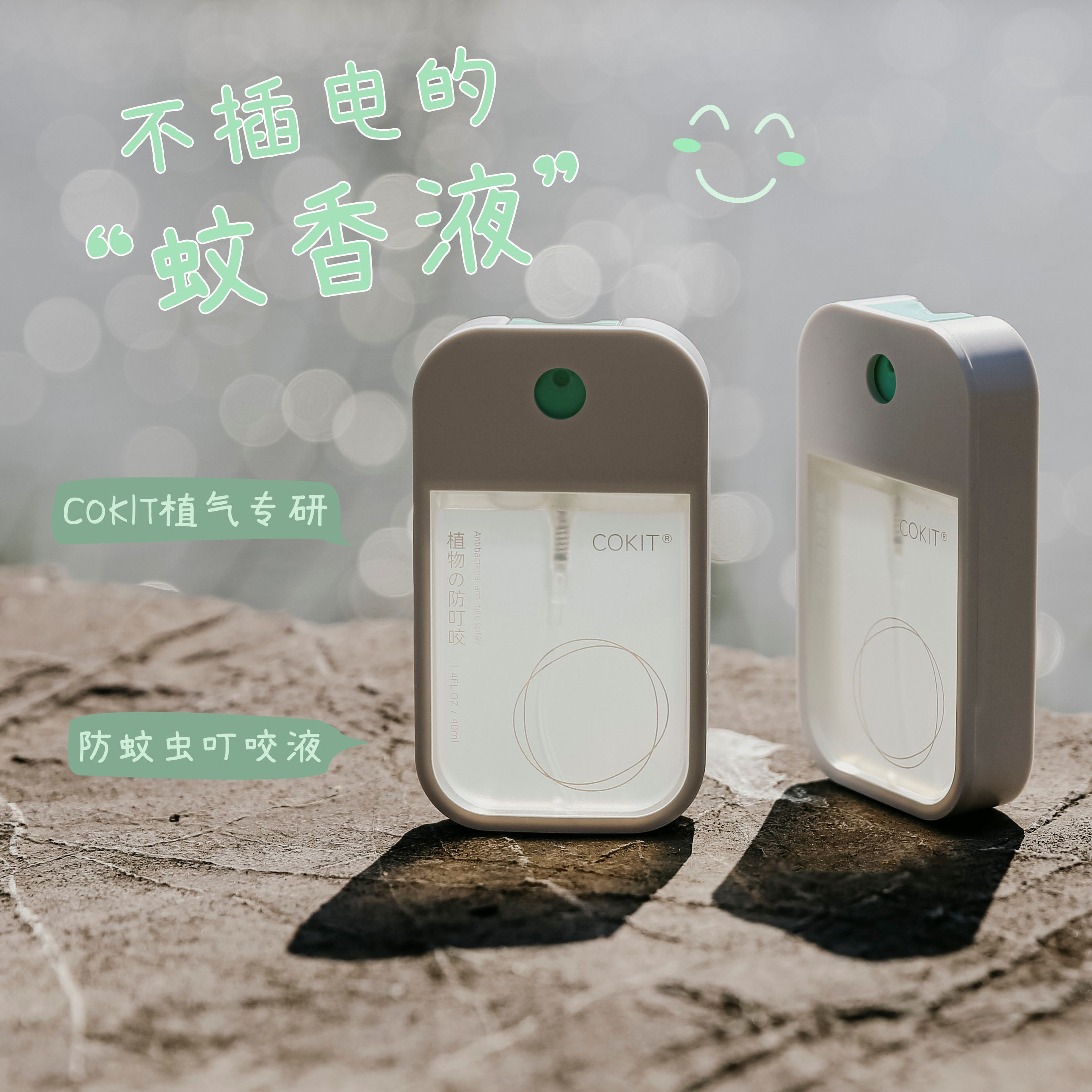 cokit 的驱蚊喷雾采用进口精油植萃,植物+水,质地水润且不粘腻。