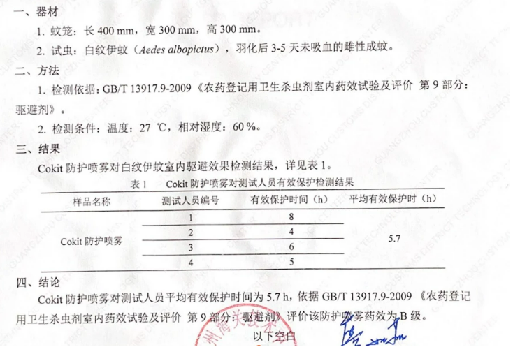 △实验室检测数据,平均驱蚊大概5.7个小时