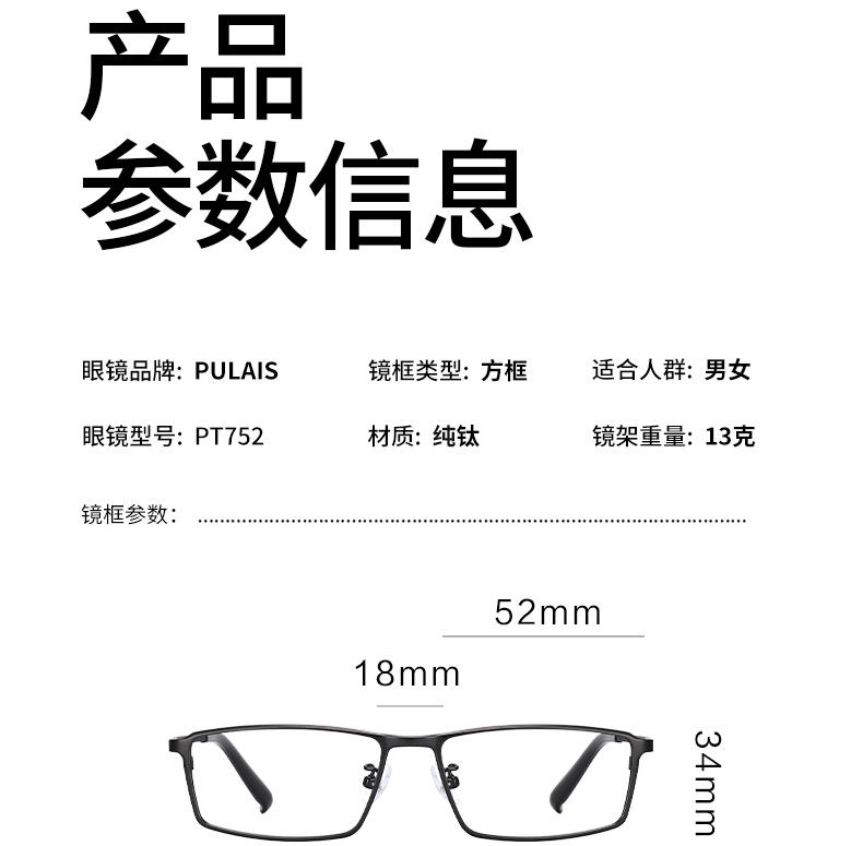 普莱斯光学镜框PT752 商务之作轻便上阵 纯钛超轻 双色可选