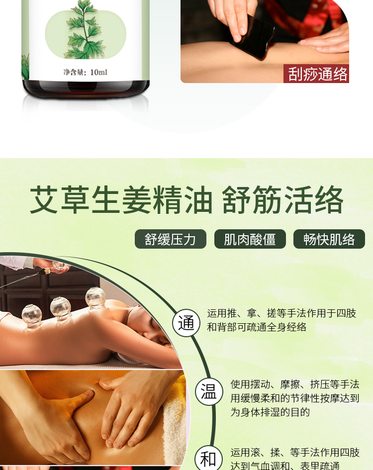 艾草精油身体推油全身推背按摩开背通经络艾油免洗面部刮痧小瓶