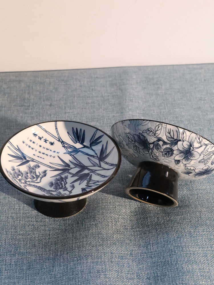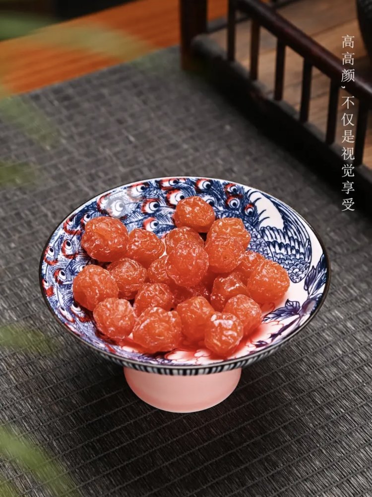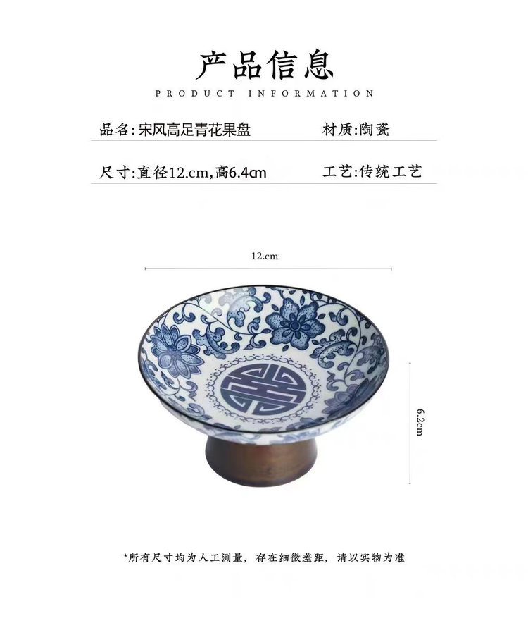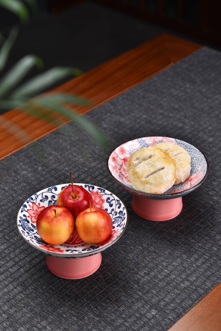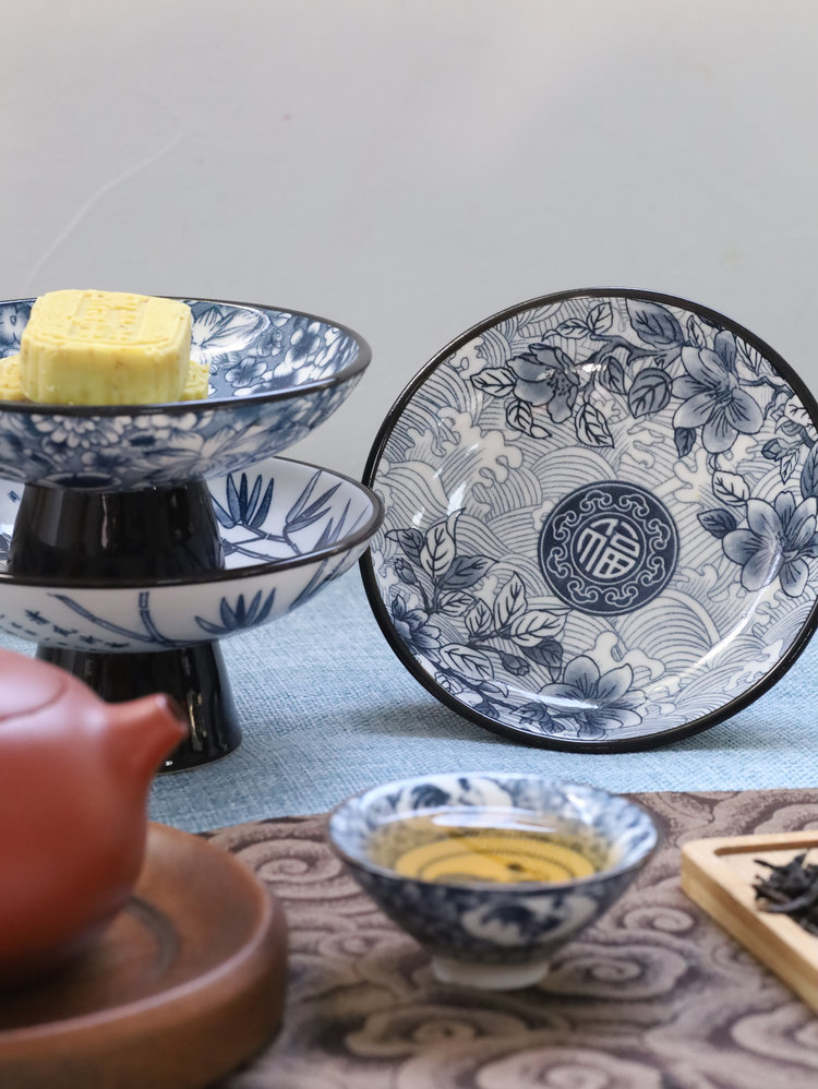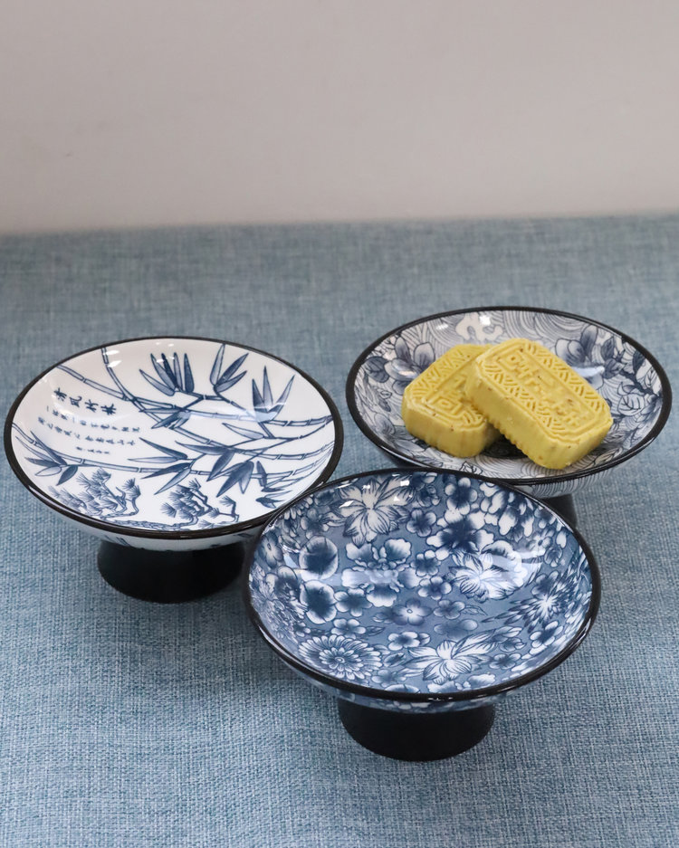 宋风高足青花果盘3个/组 源于宋代的茶道美学 | 德化羊脂玉胚底 釉下彩图案栩栩如生 高足设计 摆放平稳 百搭美器 一物多用