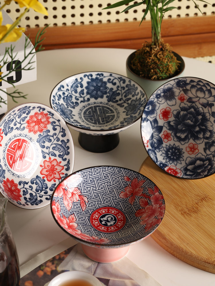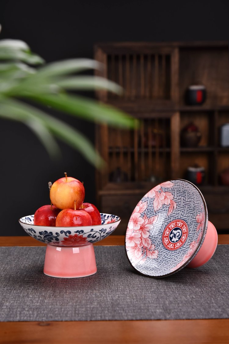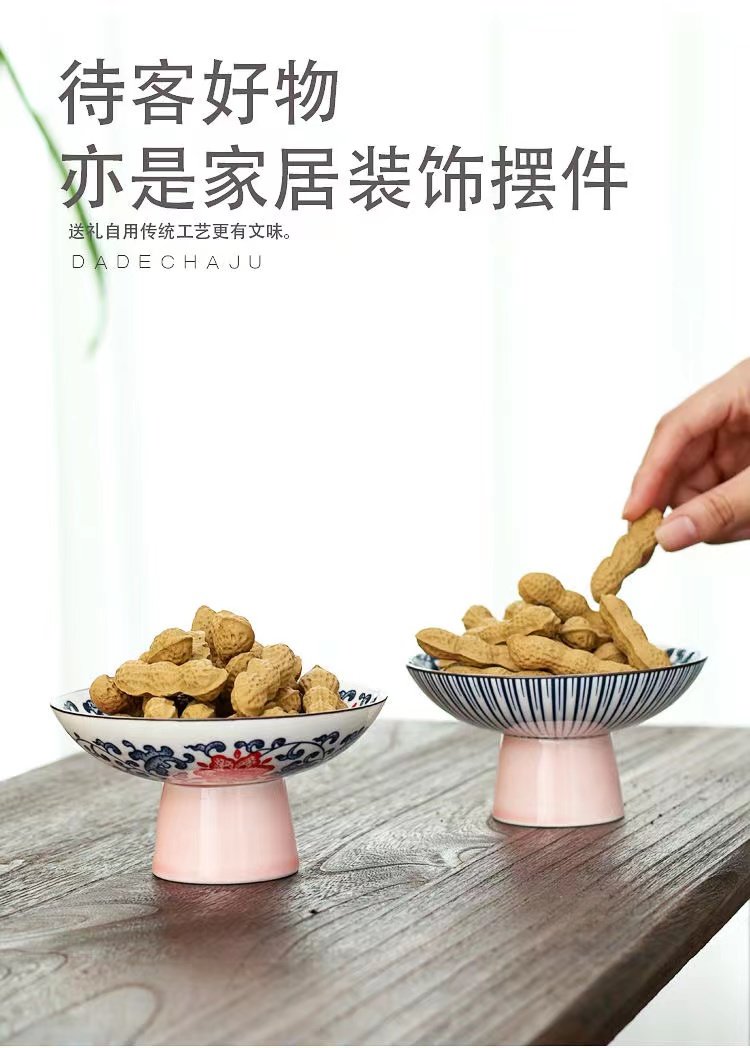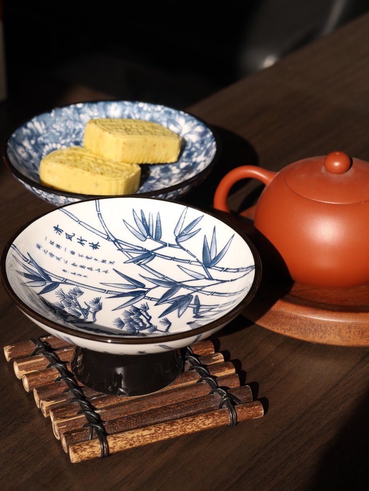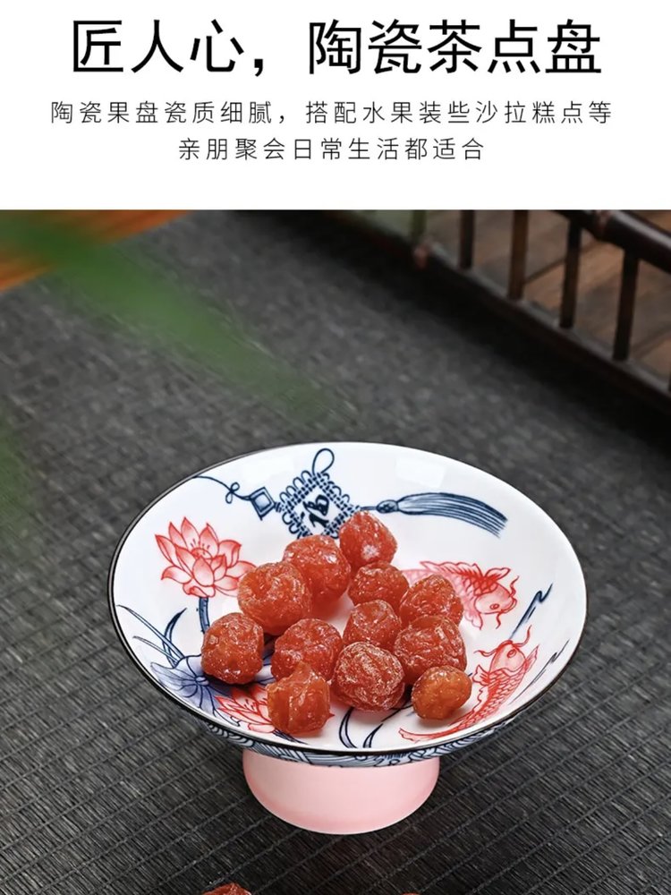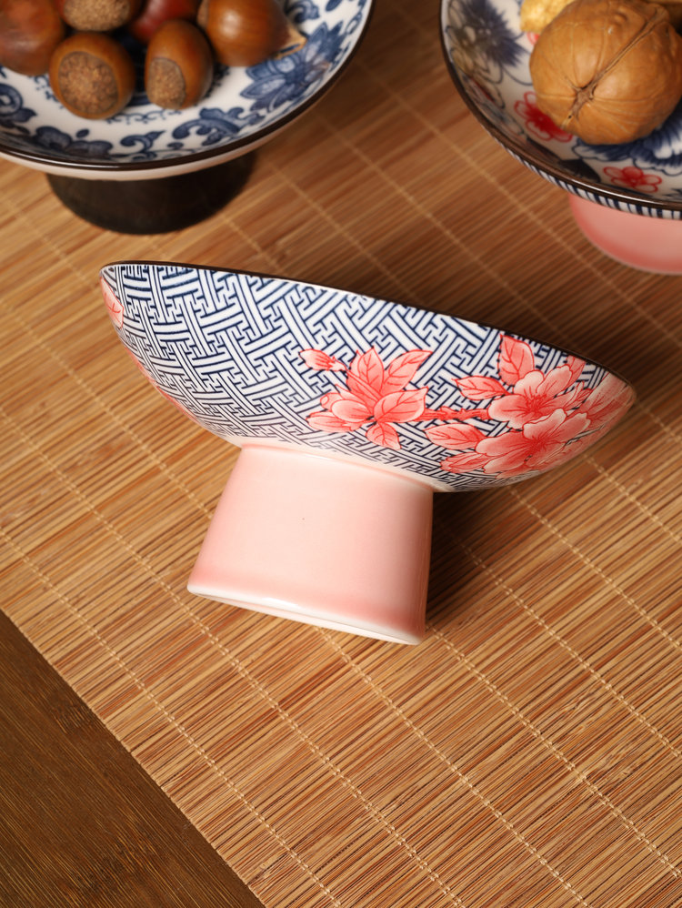 宋风高足青花果盘3个/组 源于宋代的茶道美学 | 德化羊脂玉胚底 釉下彩图案栩栩如生 高足设计 摆放平稳 百搭美器 一物多用