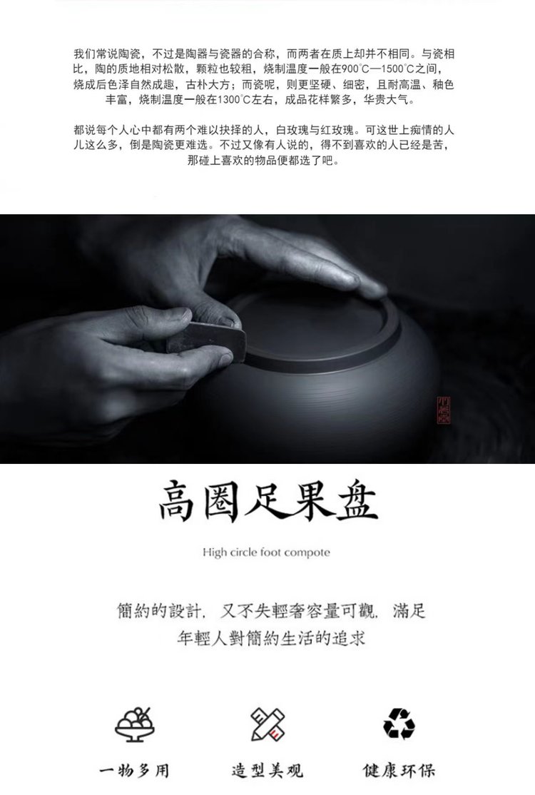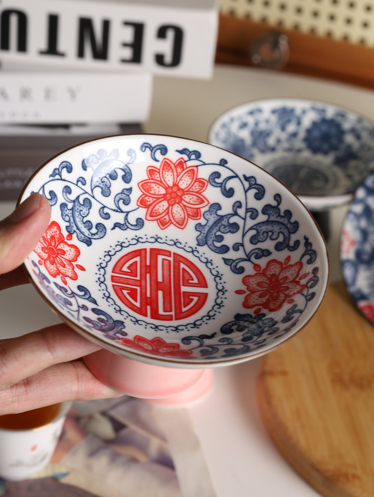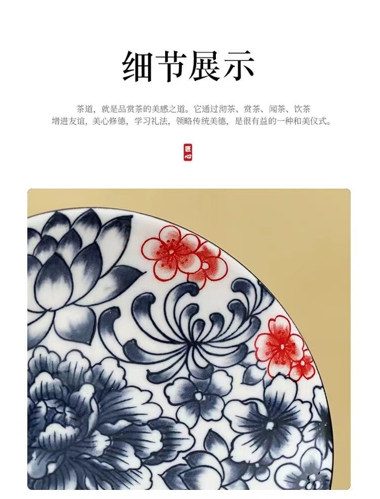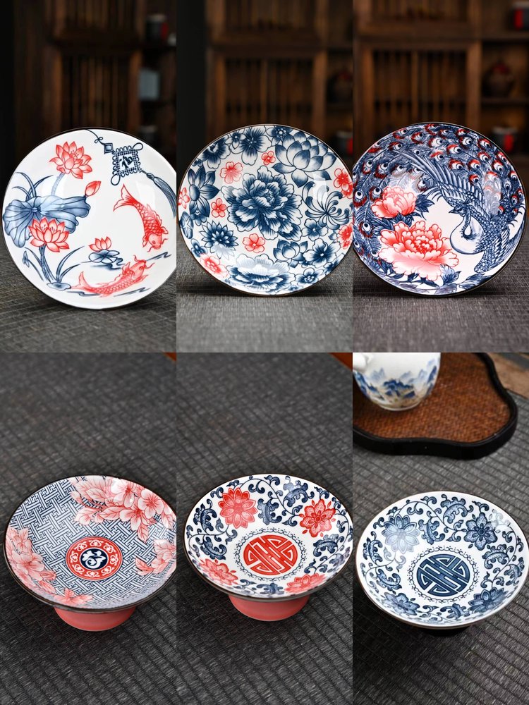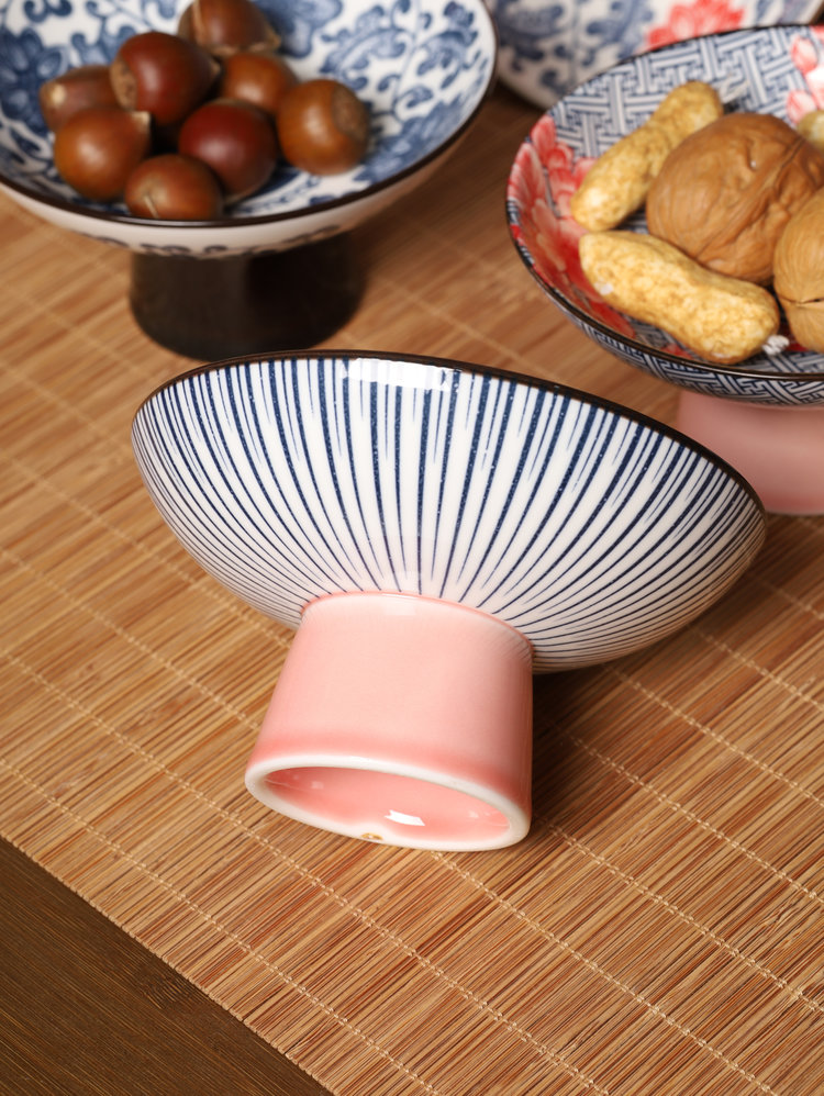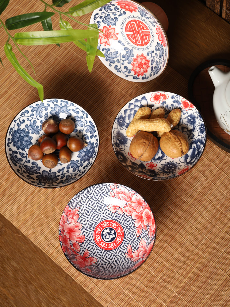 宋风高足青花果盘3个/组 源于宋代的茶道美学 | 德化羊脂玉胚底 釉下彩图案栩栩如生 高足设计 摆放平稳 百搭美器 一物多用