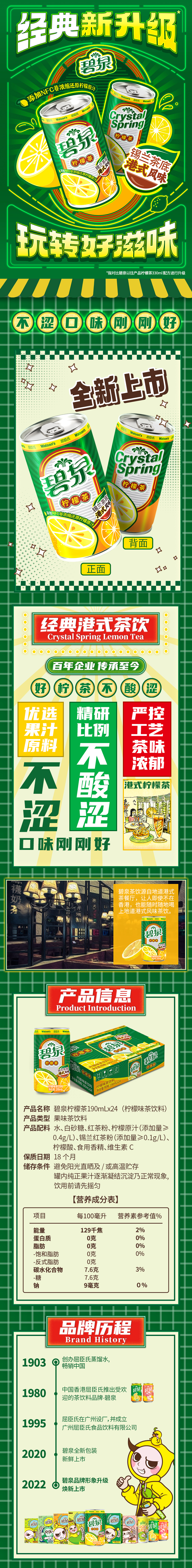 碧泉港式风味锡兰茶底柠檬味茶饮料190ml*24罐