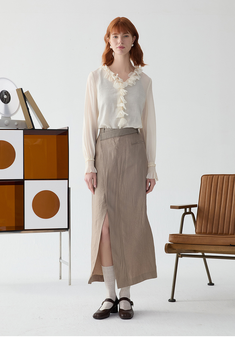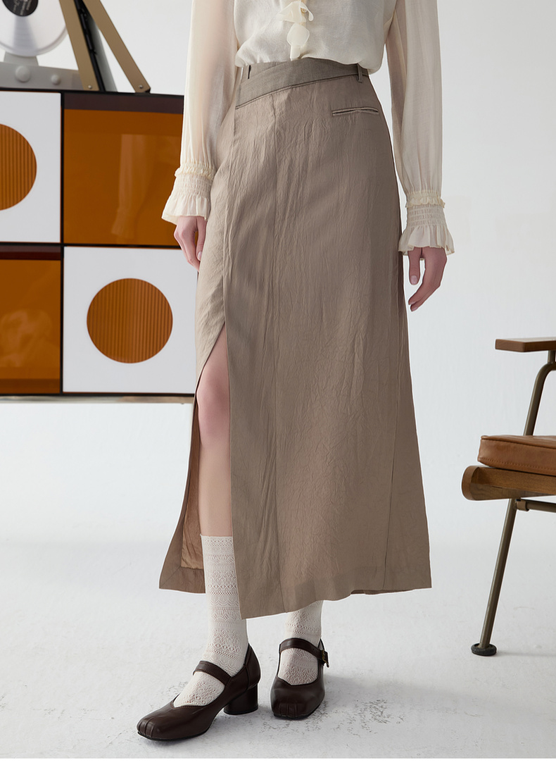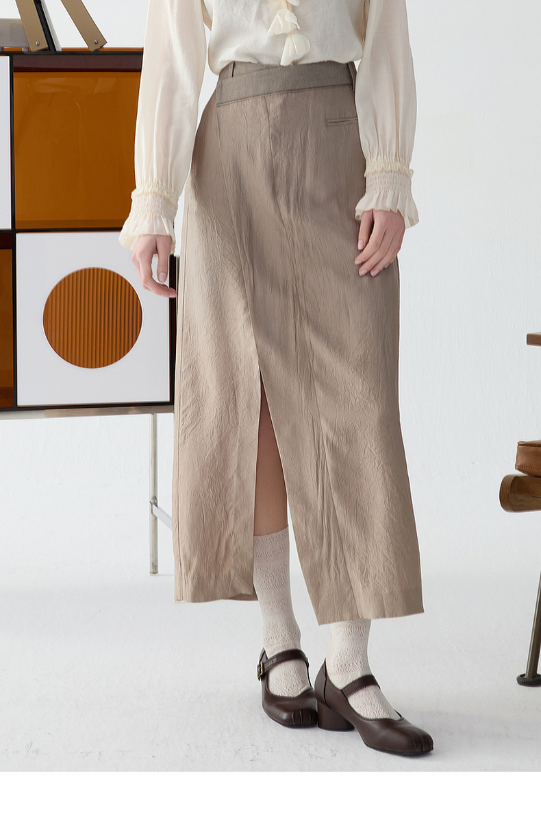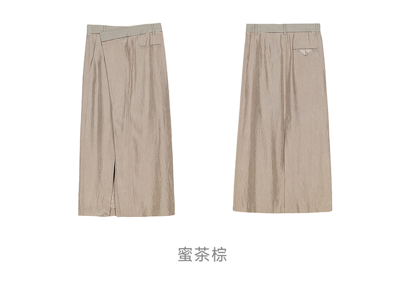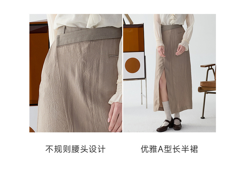 谜底半身裙2025春新品通勤风不规则设计前开叉中长半裙251GB0056