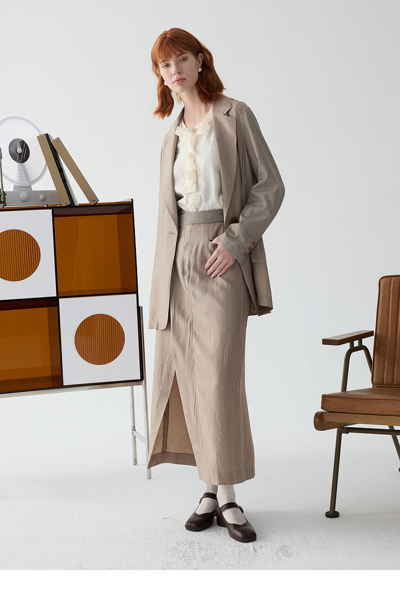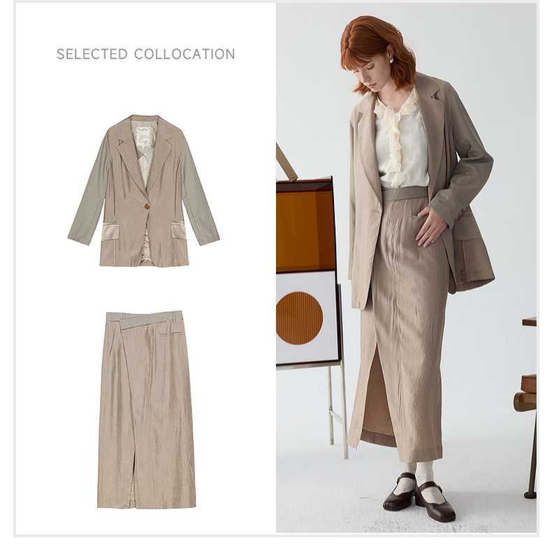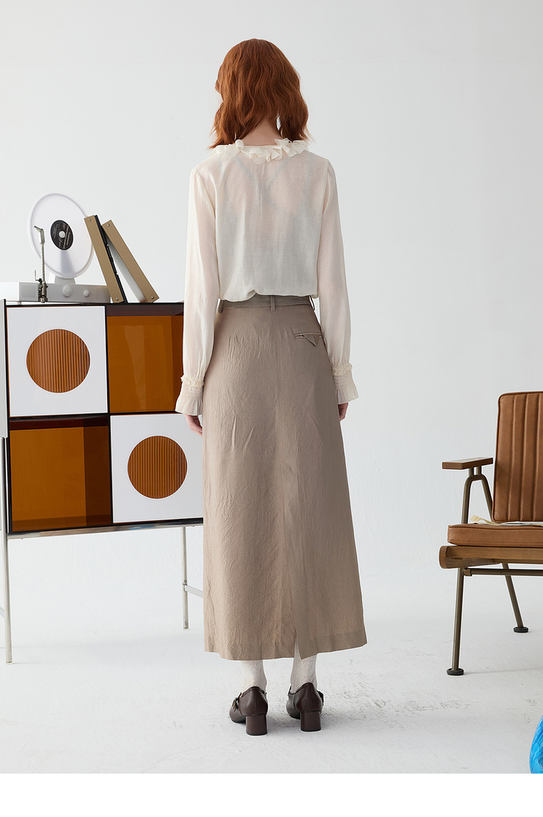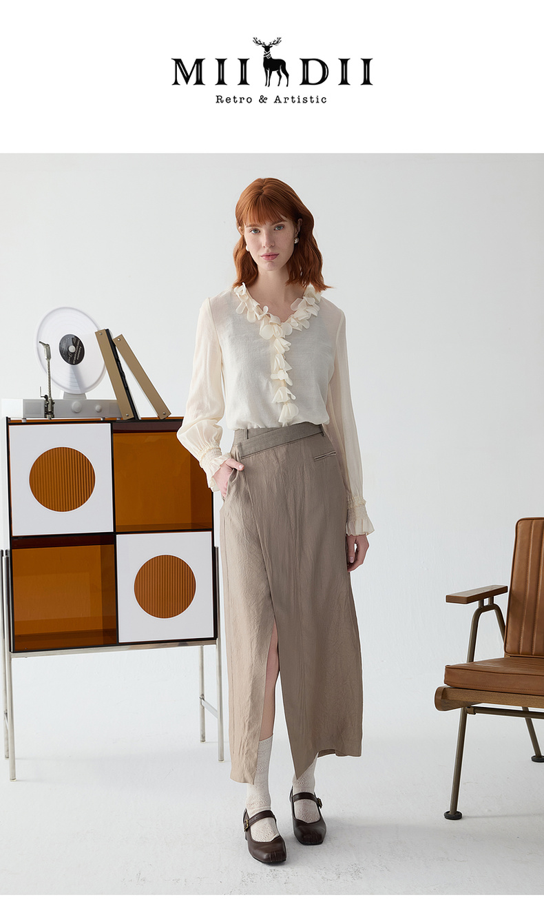 谜底半身裙2025春新品通勤风不规则设计前开叉中长半裙251GB0056