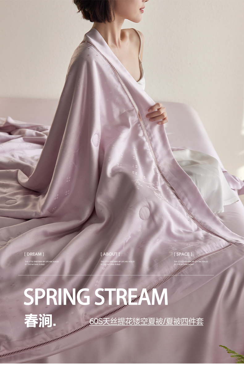 自然醒60支春涧奥地利天丝提花镂空夏被A类母婴大豆莱赛尔空调被四件套简约可机洗丝滑TD