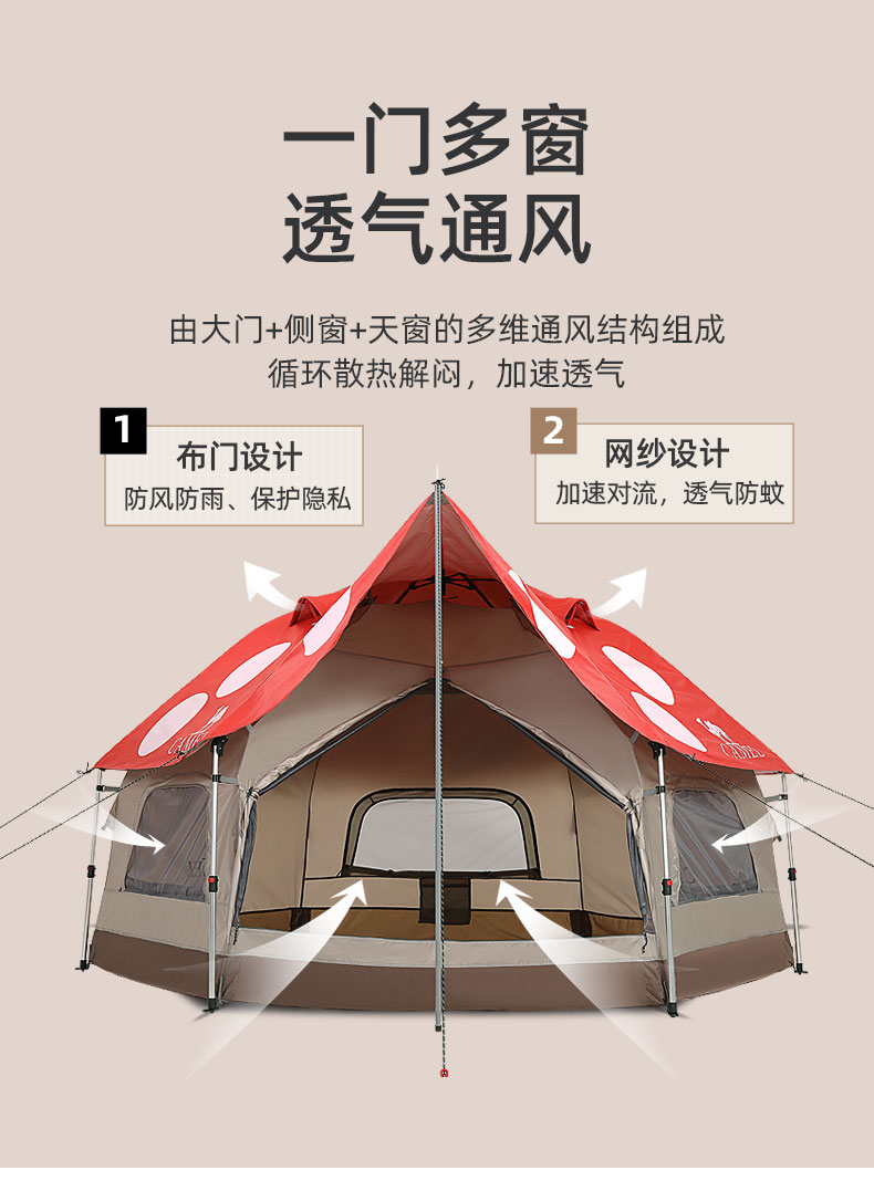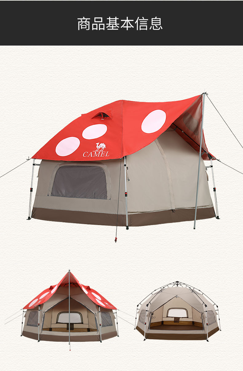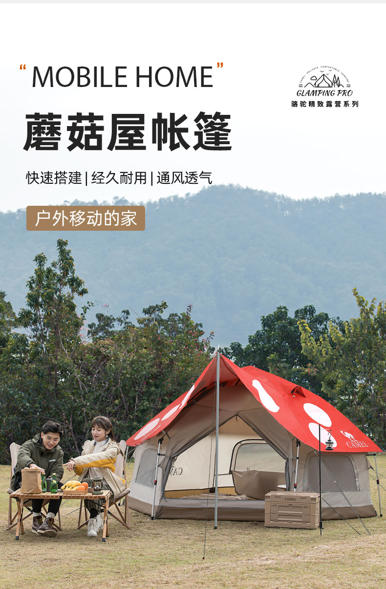 骆驼户外精致露营蘑菇帐篷便携式涂银防晒防雨野餐自动帐野营装备 1J322C7728