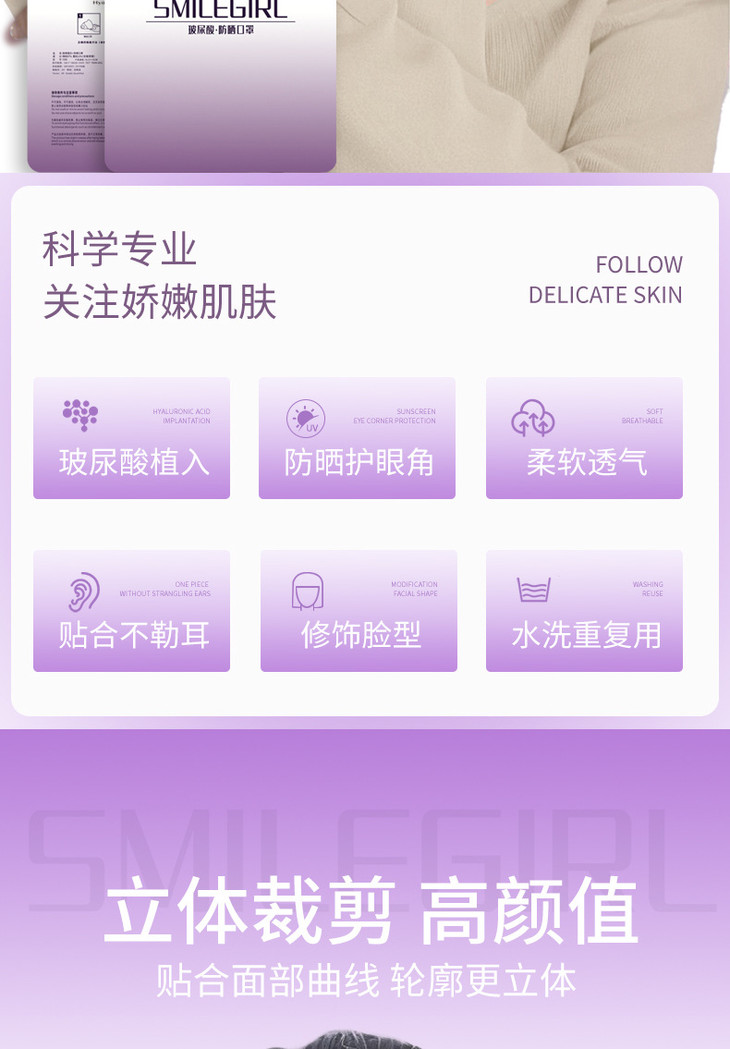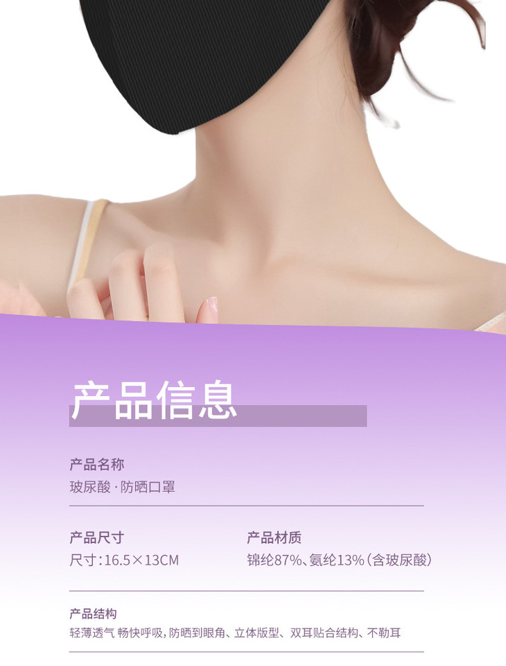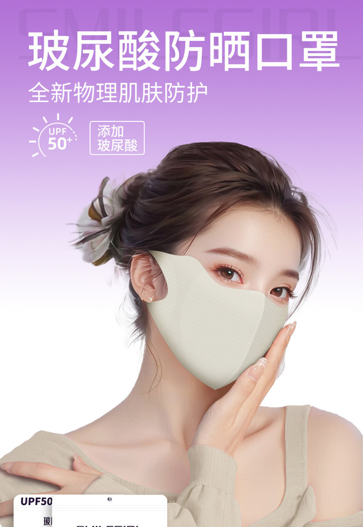 【保湿+防晒!UPF50+玻尿酸口罩】高颜值,显脸小,防晒夏季防晒面罩透气亲肤护眼角防紫外线