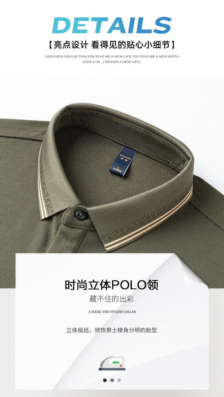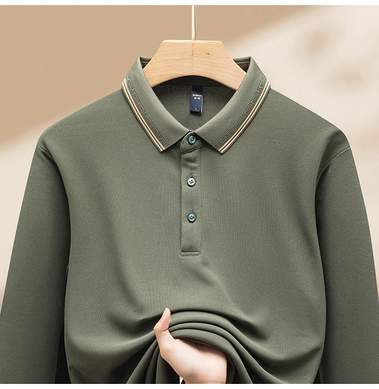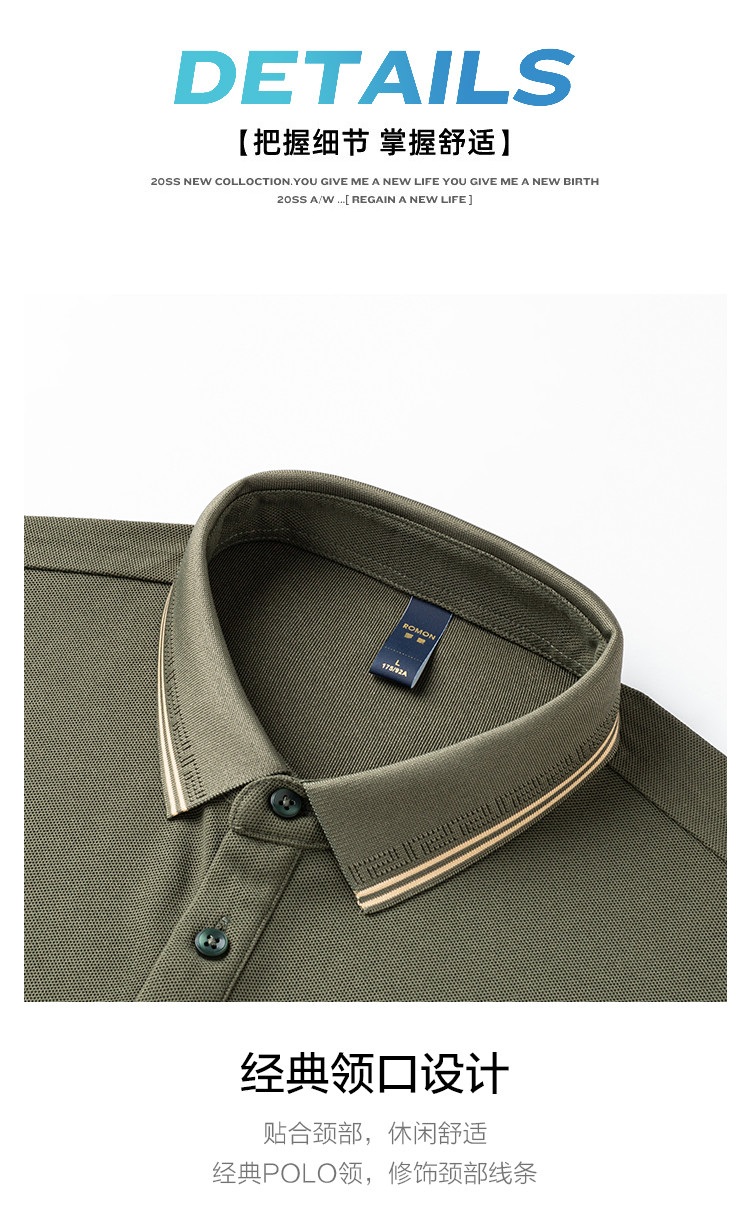 【7A抗菌】罗蒙春秋男装长袖POLO衫男士撞色领商务休闲打底长袖翻领男T恤
