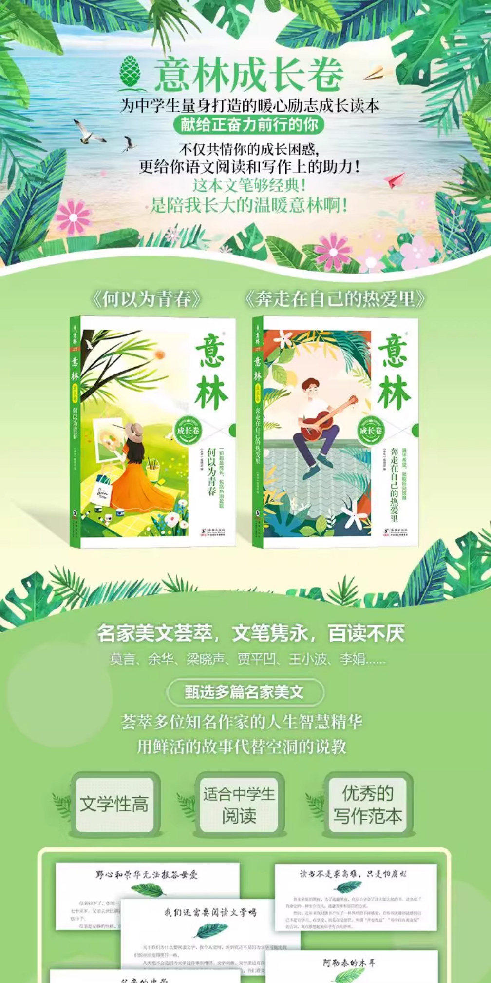 意林成长卷篇全2册 何以为青春+奔走在自己的热爱里 为中小学生打造的励志成长金句!