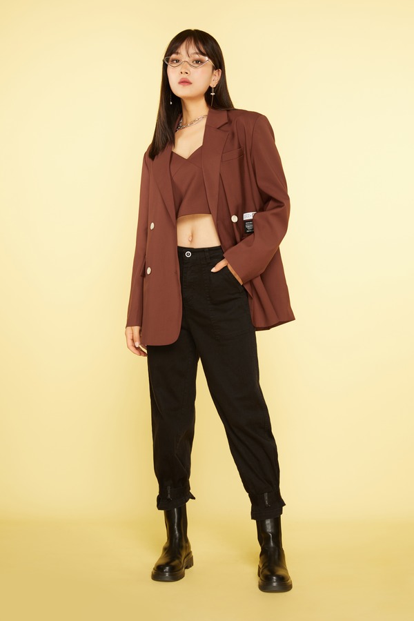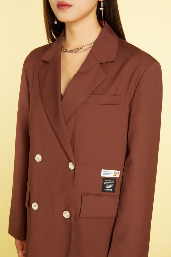 WHO KNOWS 帅气学院风棕色西装外套 11492