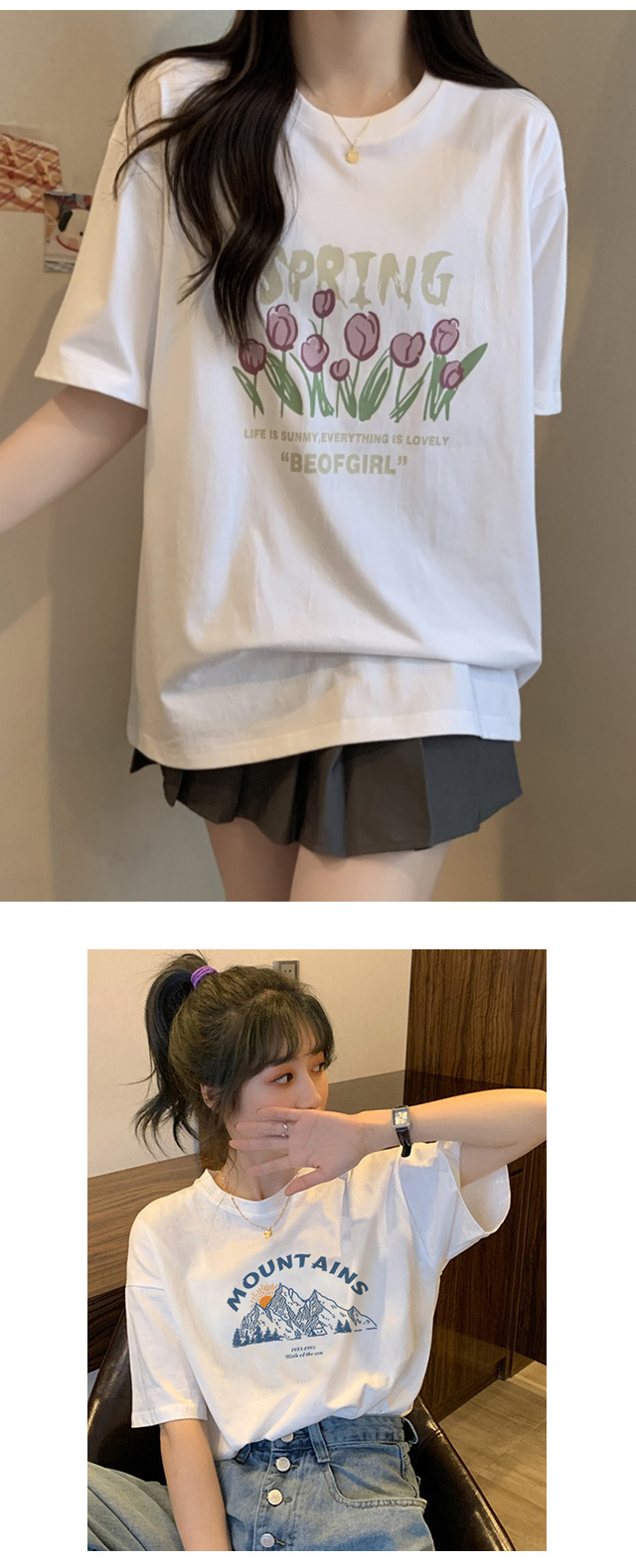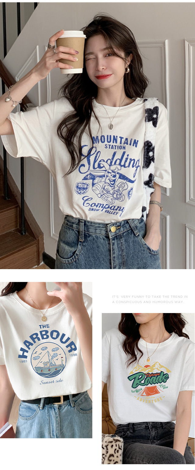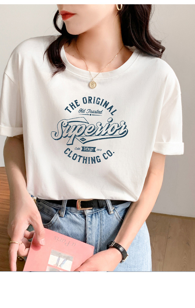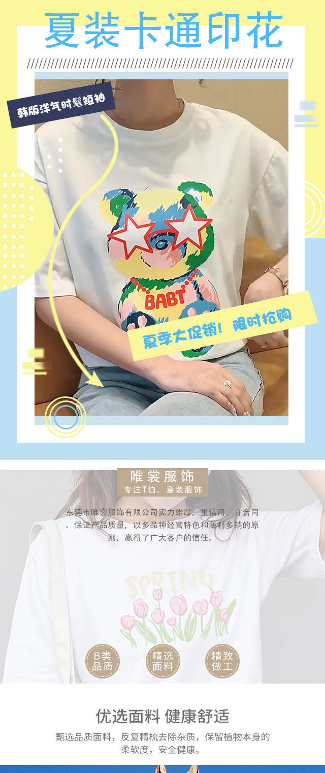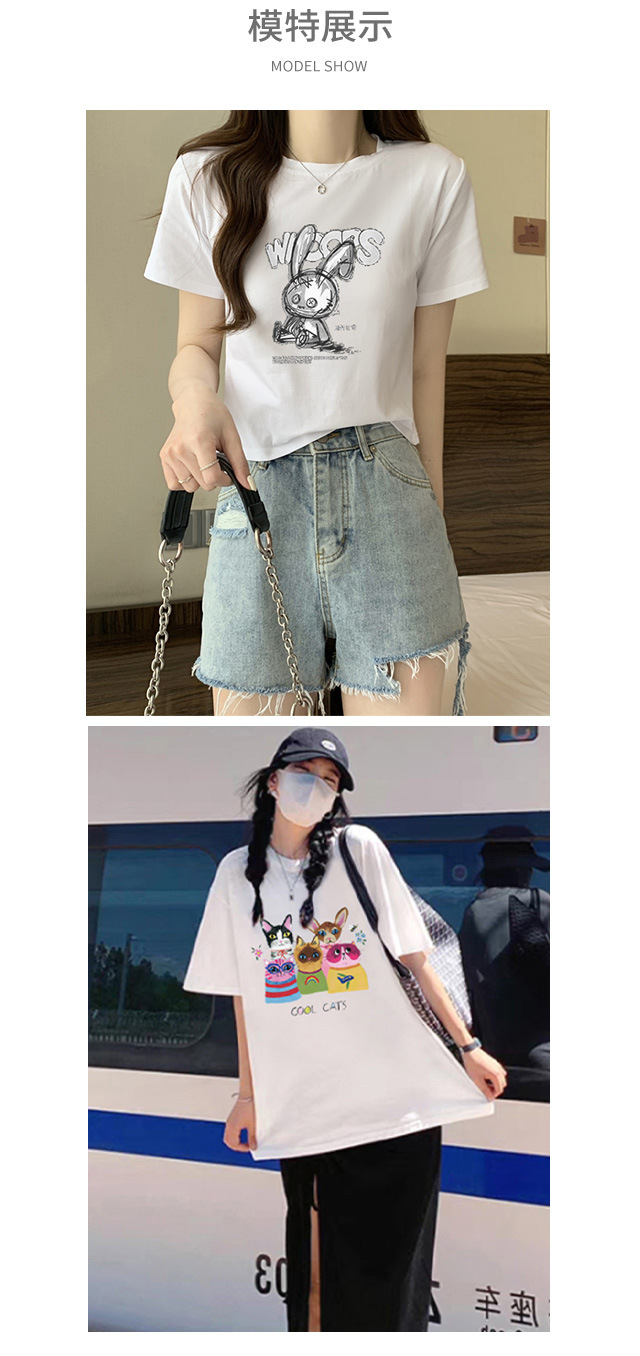 【夏日热卖,白色短袖T恤女神装】清新简约,时尚印花,展现个性魅力。柔软舒适的纯棉面料,让你在炎炎夏日中轻松穿着,散发迷人气息。韩版宽松设计,显瘦显高,让你轻松拥有完美身材!