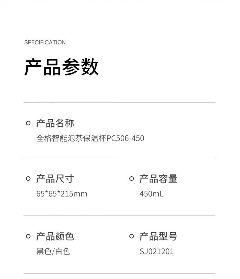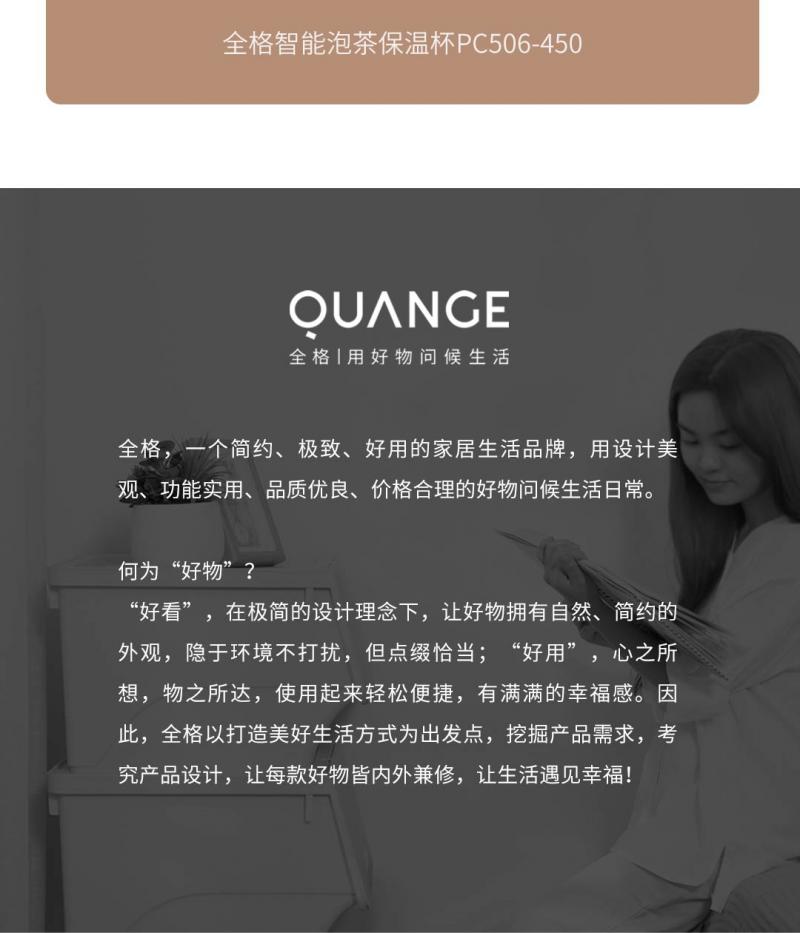 【自营】全格 智能泡茶保温杯子水杯 【容量:450mL】PC506-450