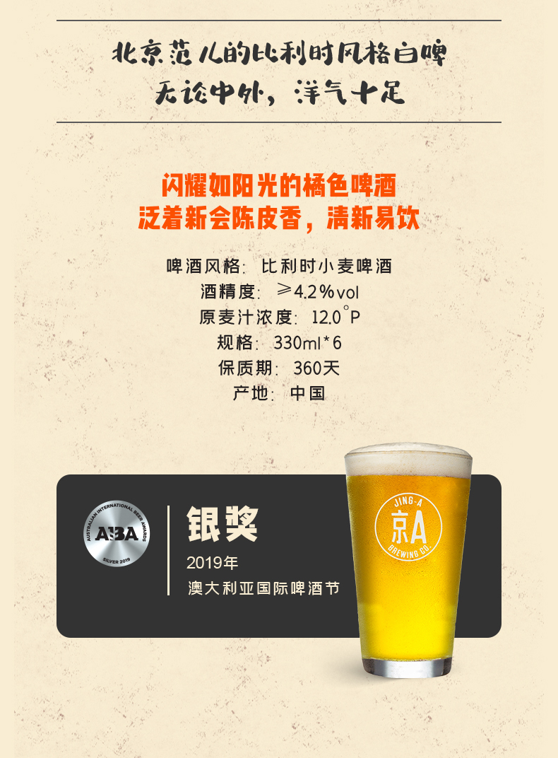 【5.13到期最后20件拍完无】京A鲜阿白小麦啤酒330ml*6瓶