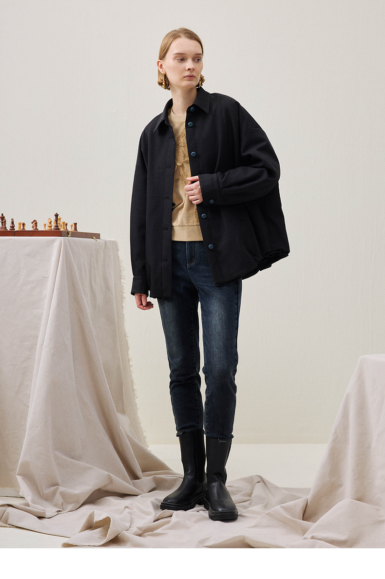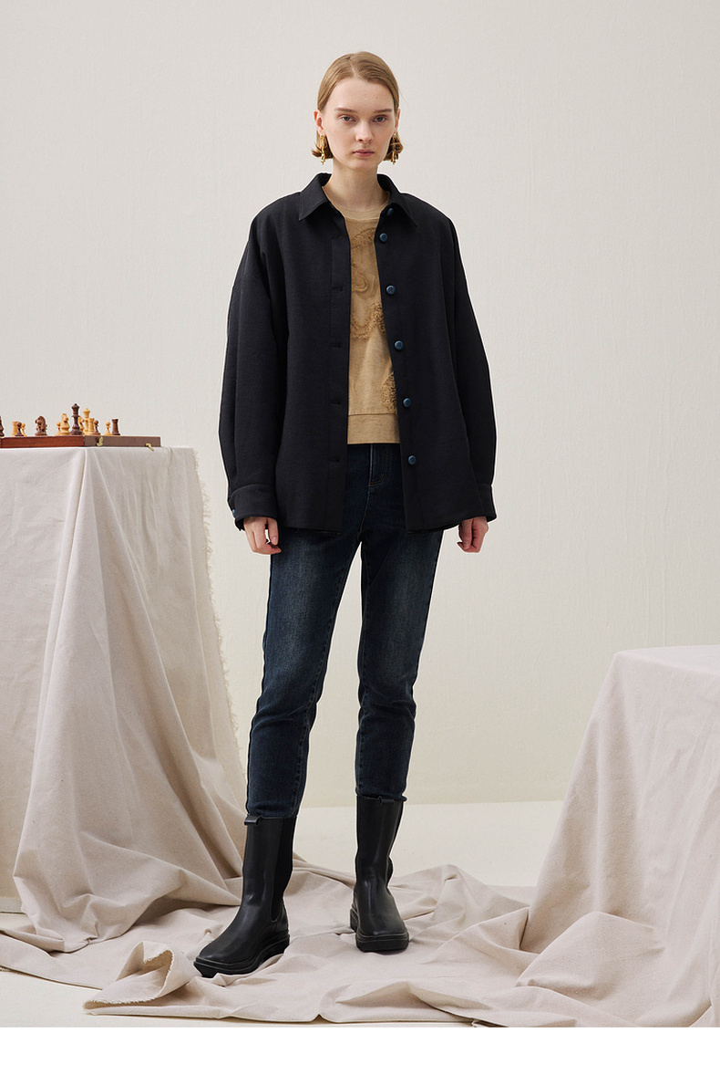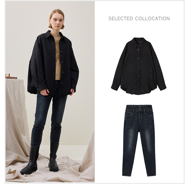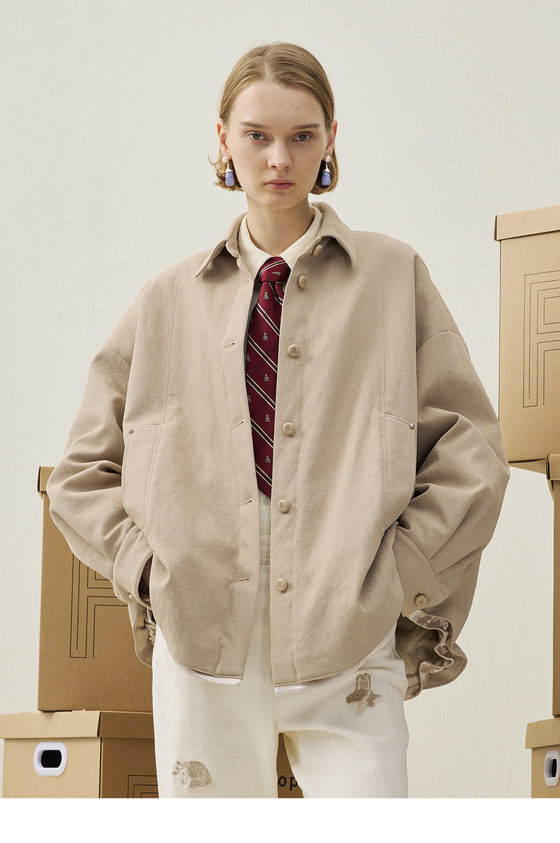 谜底衬衫式羽绒服女2025年冬季新品保暖时髦廓形鸭绒女254MY1707