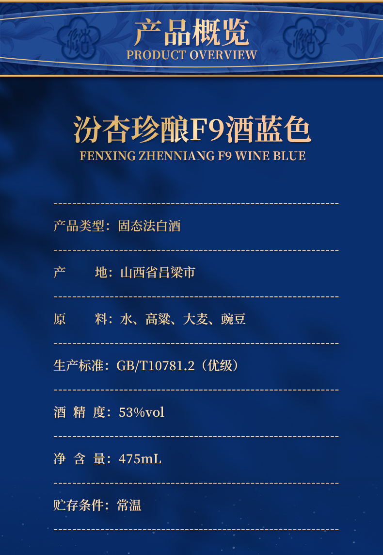 汾杏酒珍酿F9(蓝色) 53度 整箱475ml*6瓶