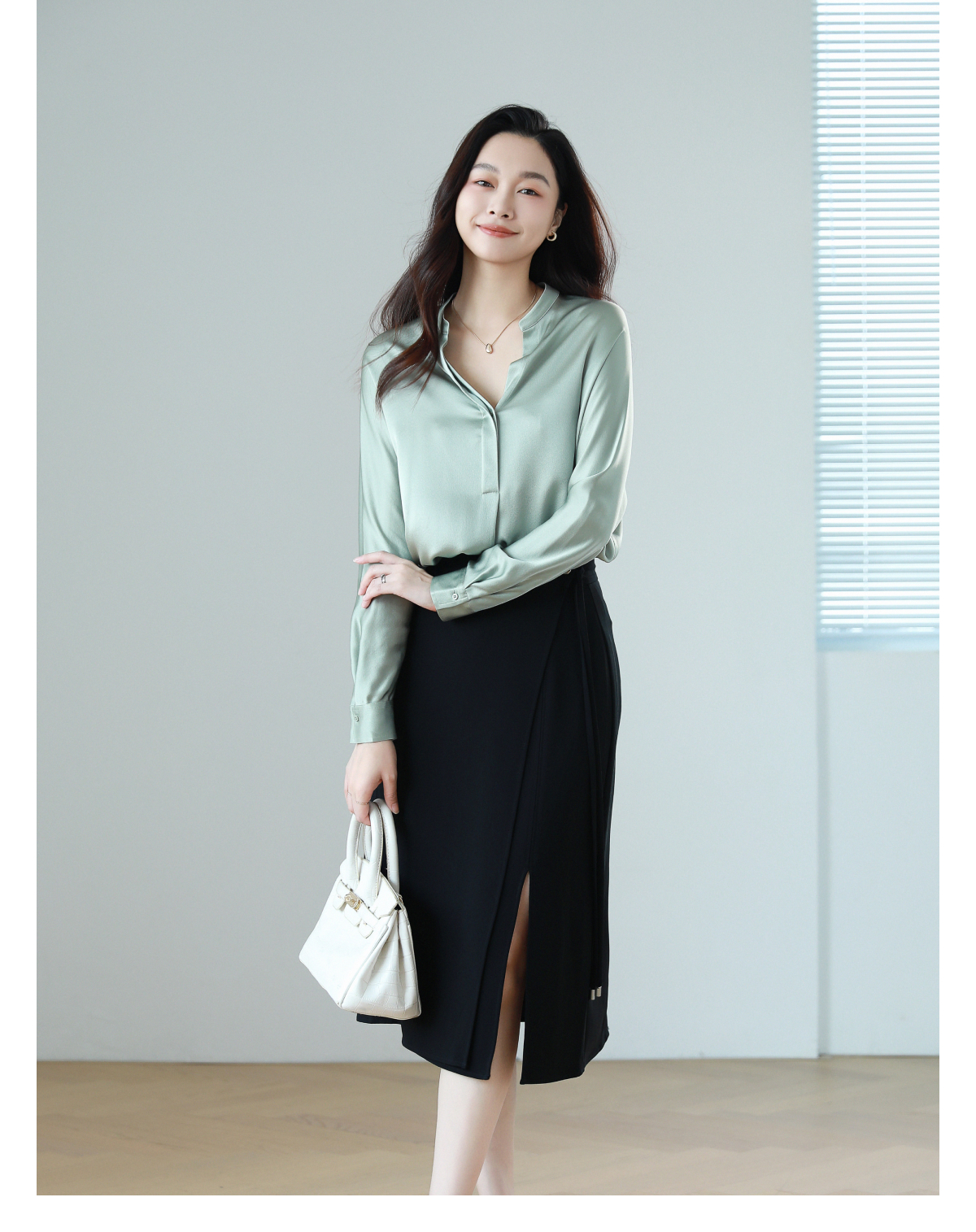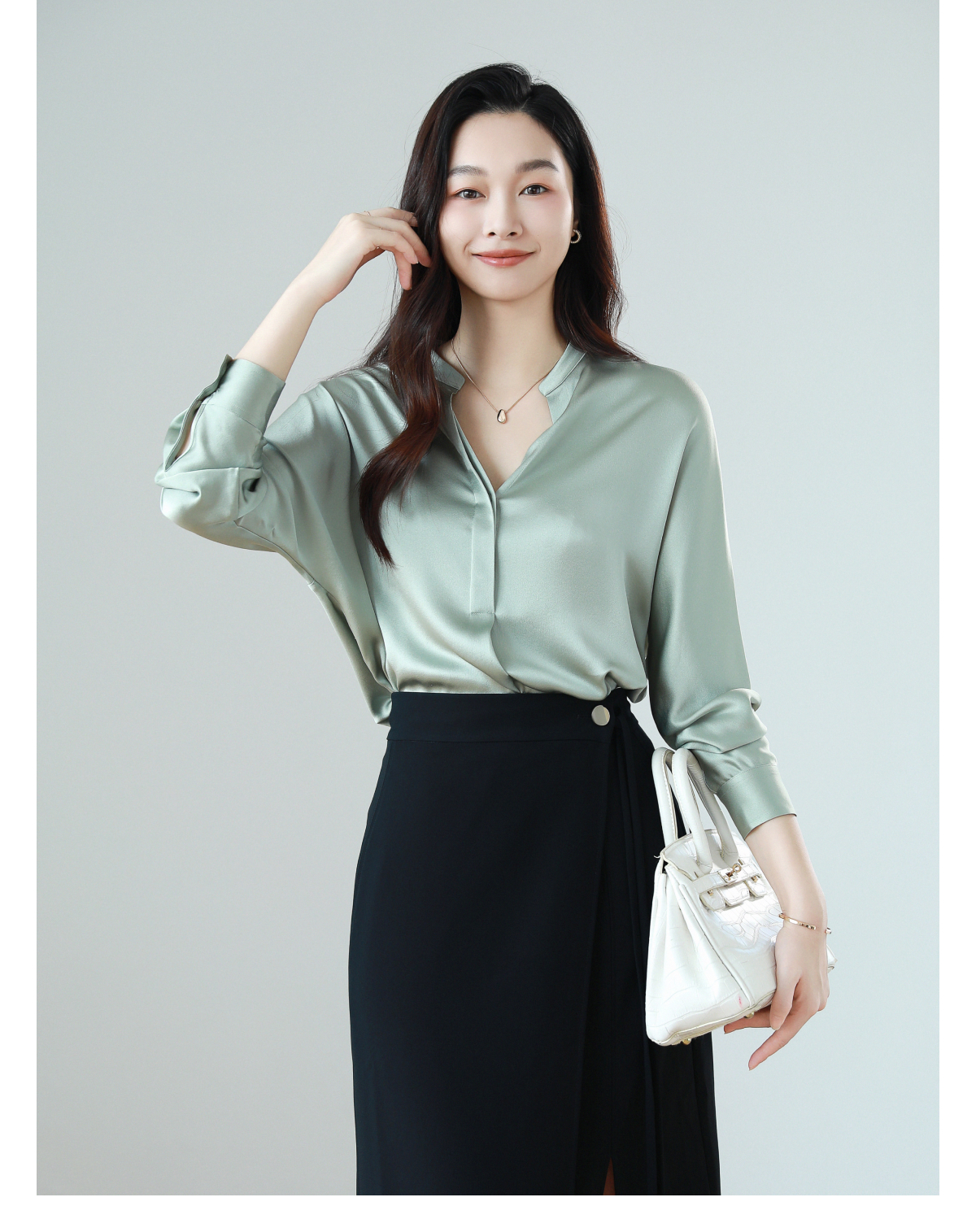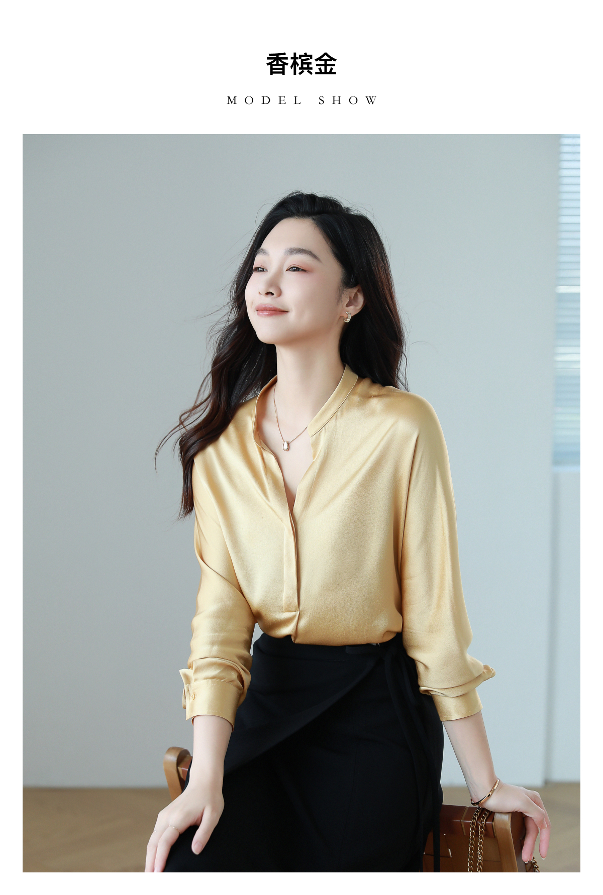 火桐hooton 鎏金岁月 22姆米缎面绉V领上衣YT2008