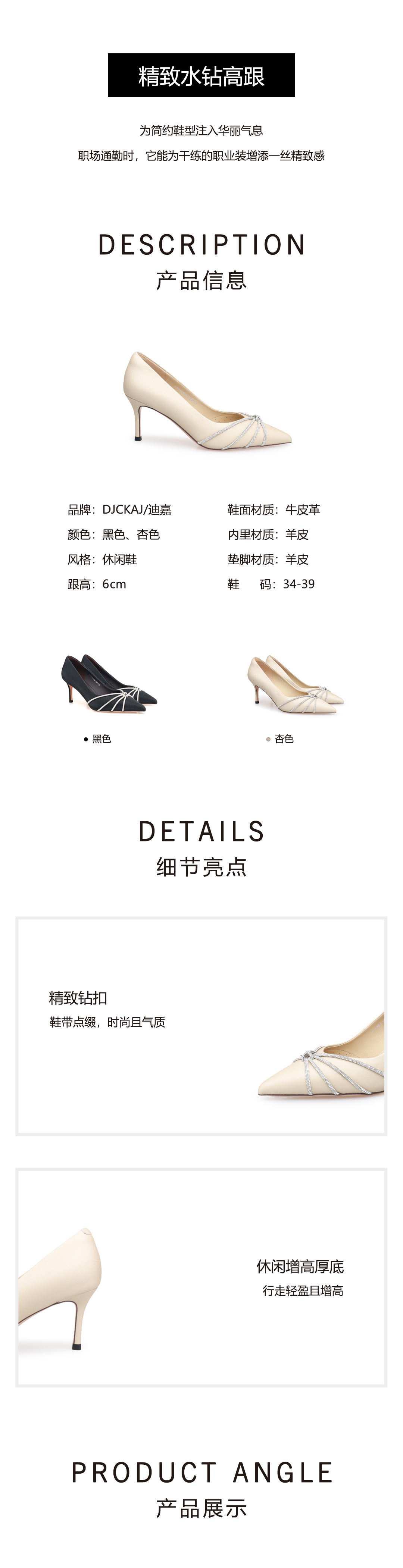 豪麟名鞋奥莱迪嘉女鞋牛皮革皮鞋DJYYO52WP204黑色 原价1960元