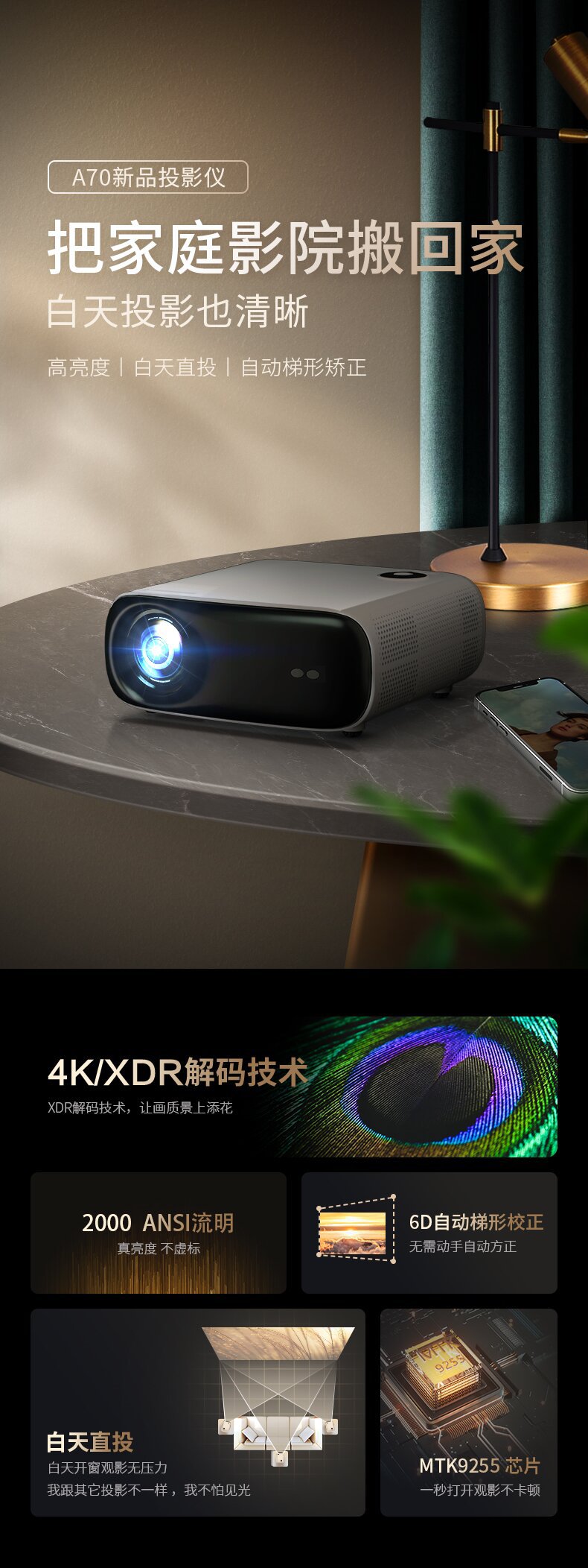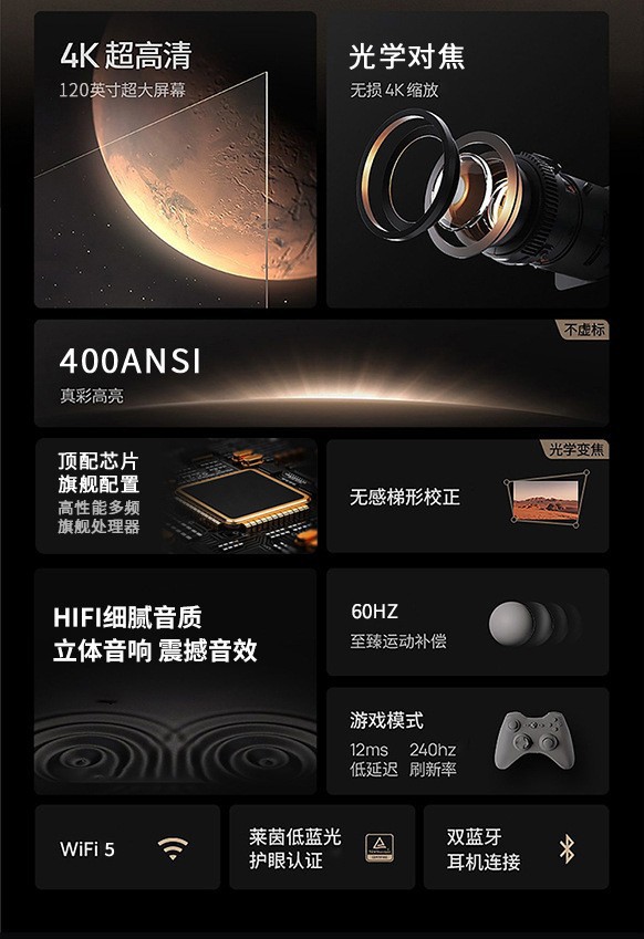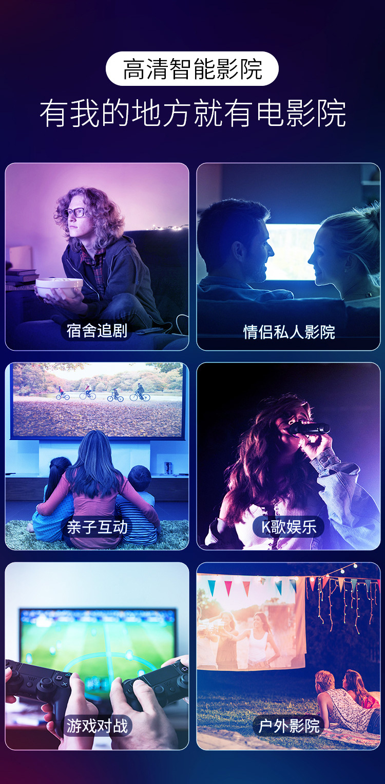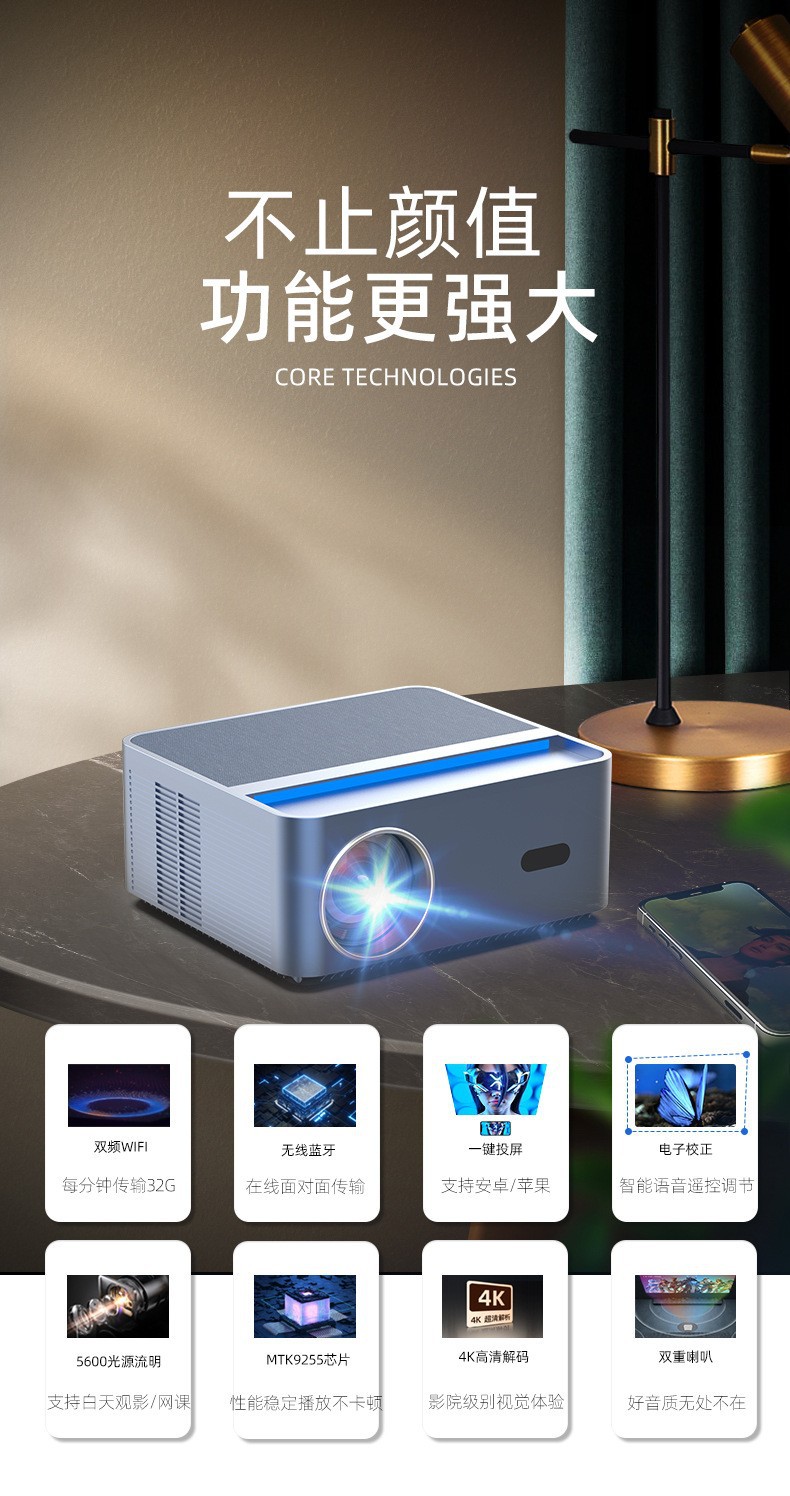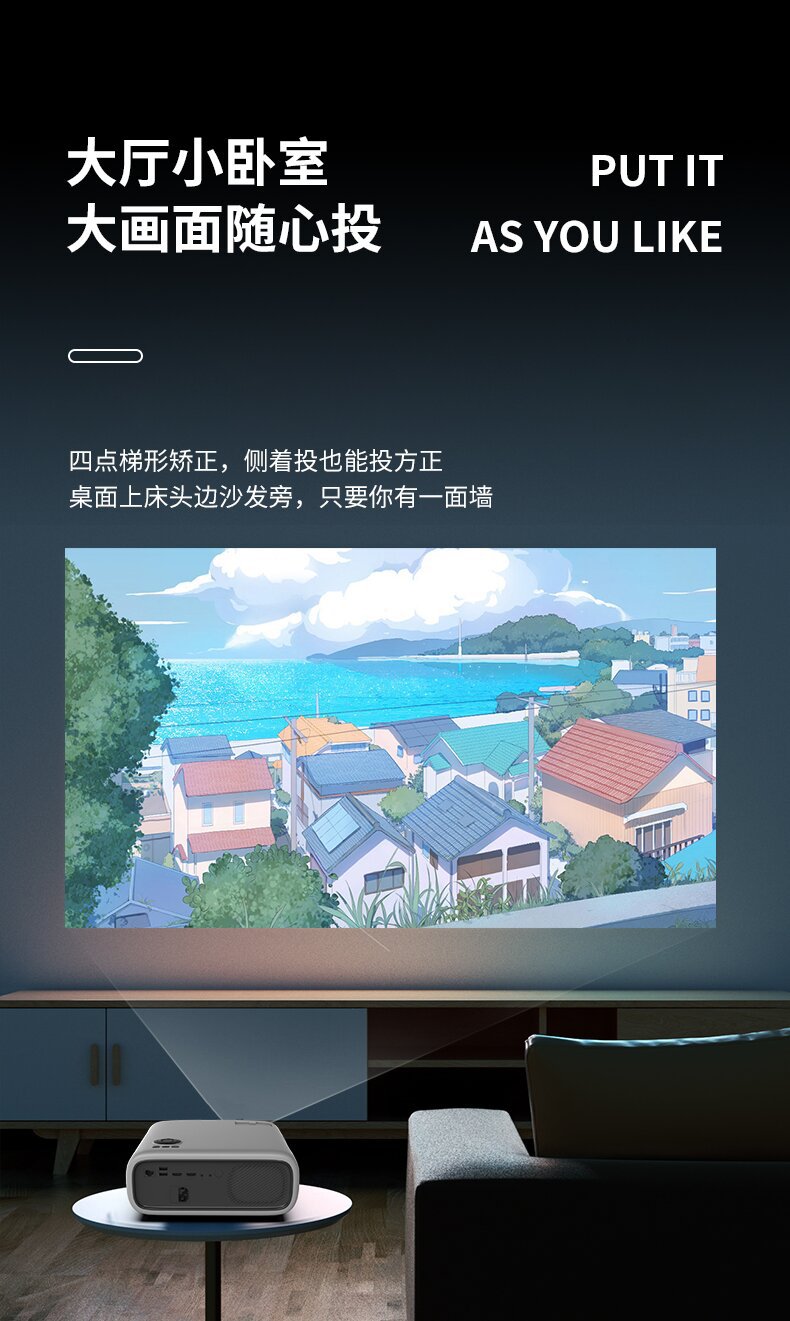 【智能家用高清4k】客厅卧室投影仪 无线投屏手机wifi投影机 自动矫正