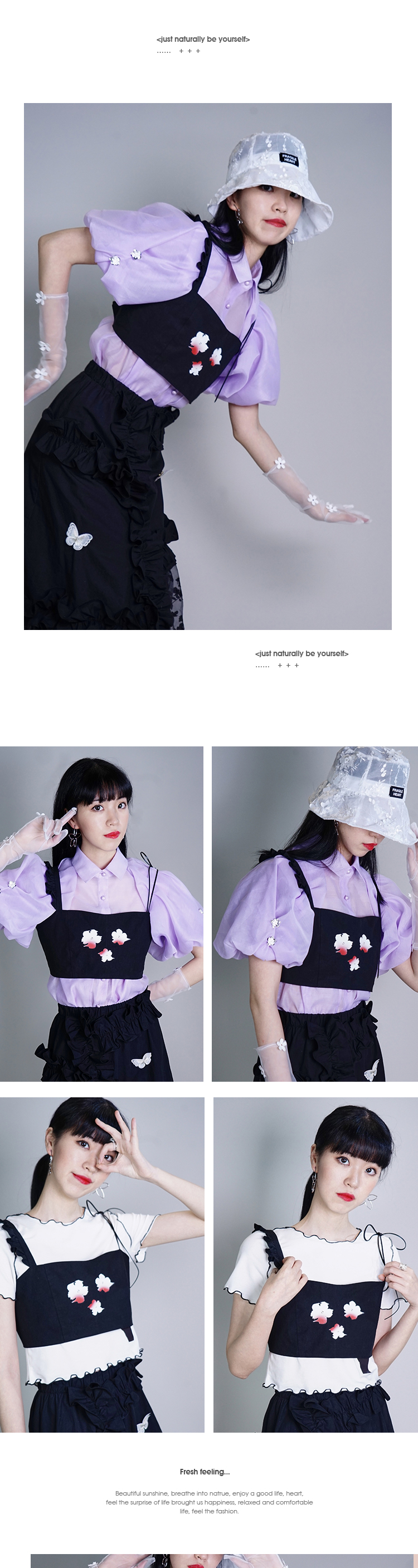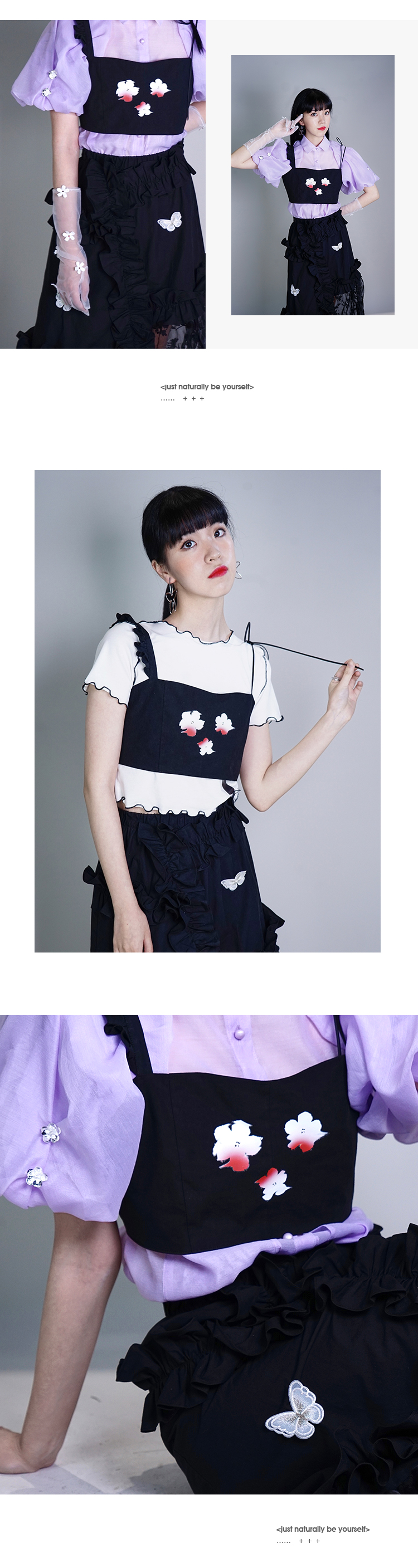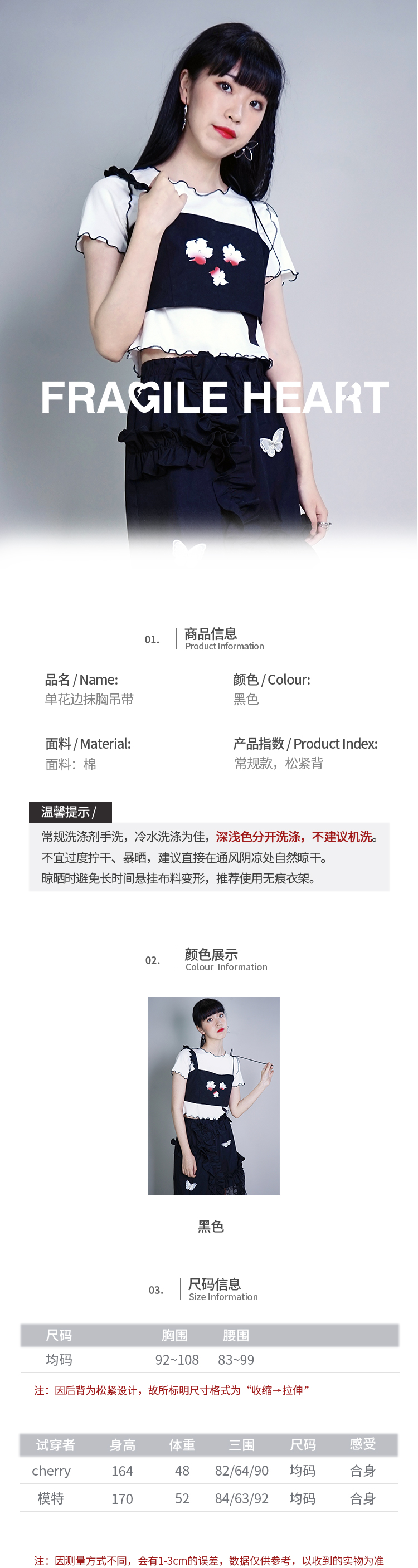 fragileheart原创短款花朵吊带不规则花边肩带内搭抹胸背心不退换