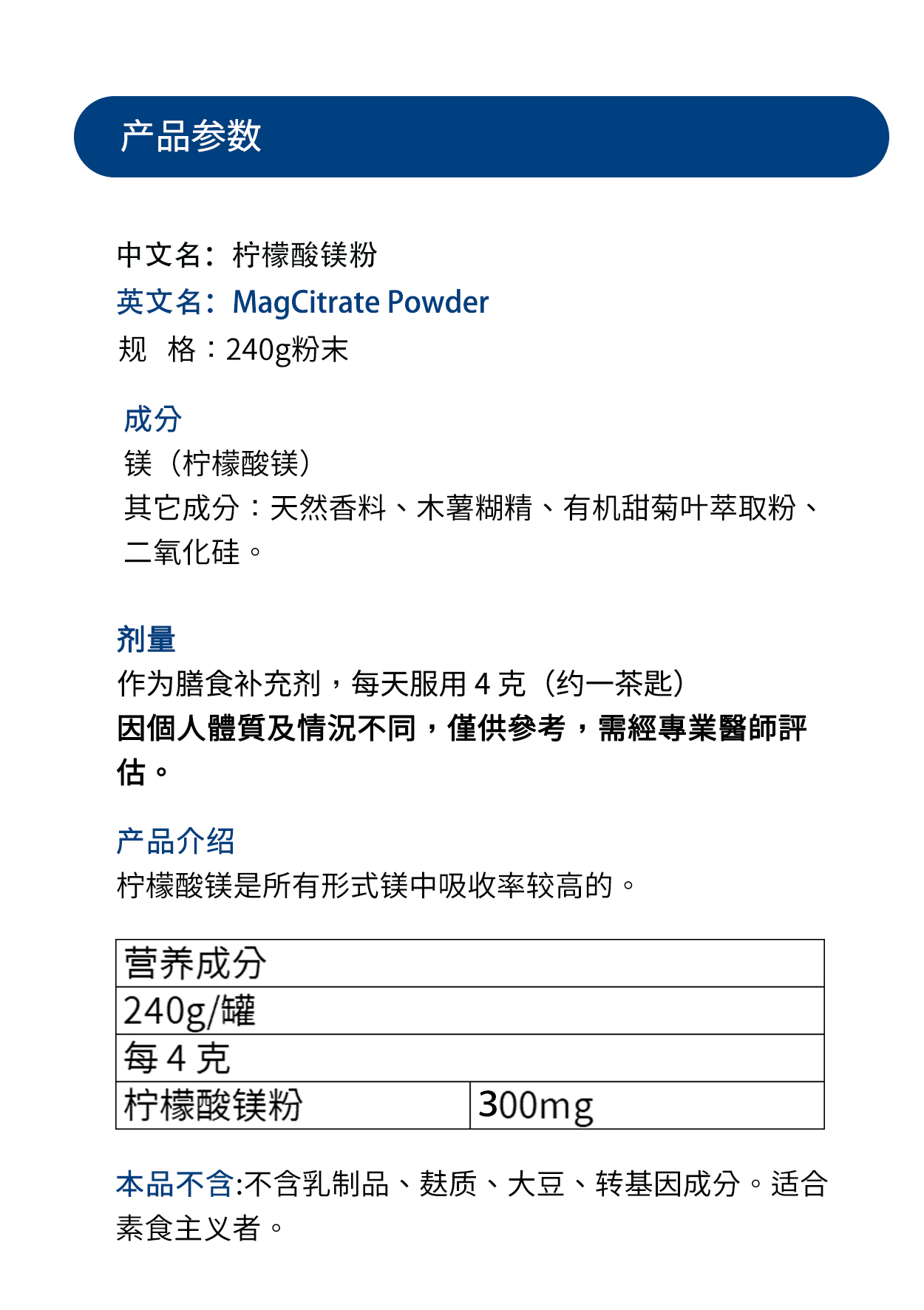 美国DFH MagCitrate Powder 柠檬酸镁粉 #镁 240g【顺丰现货】