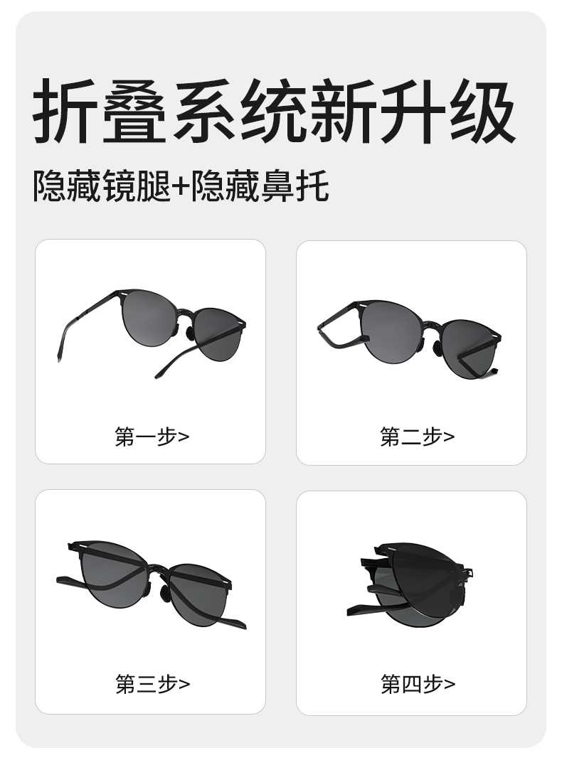 普莱斯折叠卡片墨镜系列PJS23081A 超薄精钢折叠镜 UV400滤光 精钢材质镜框 高韧尼龙镜片 男女通用 三色可选
