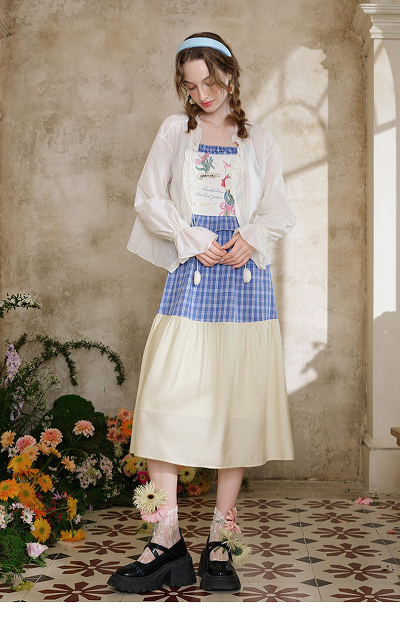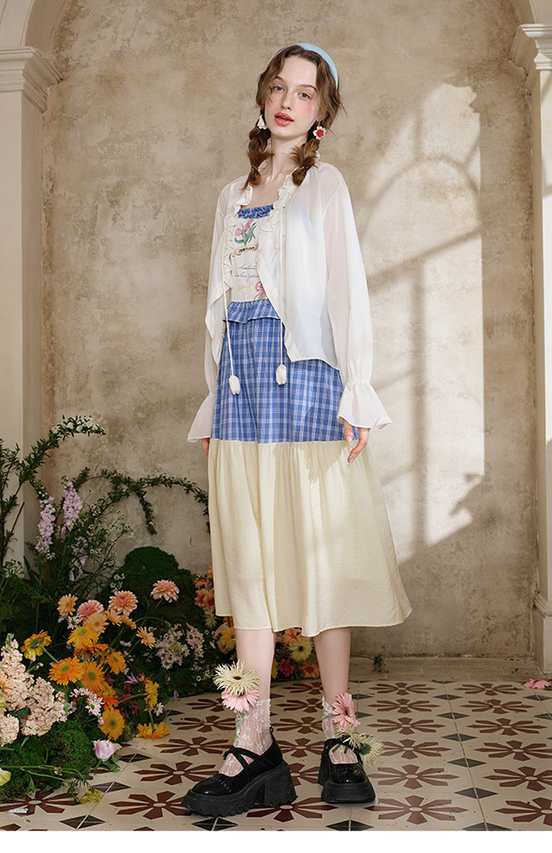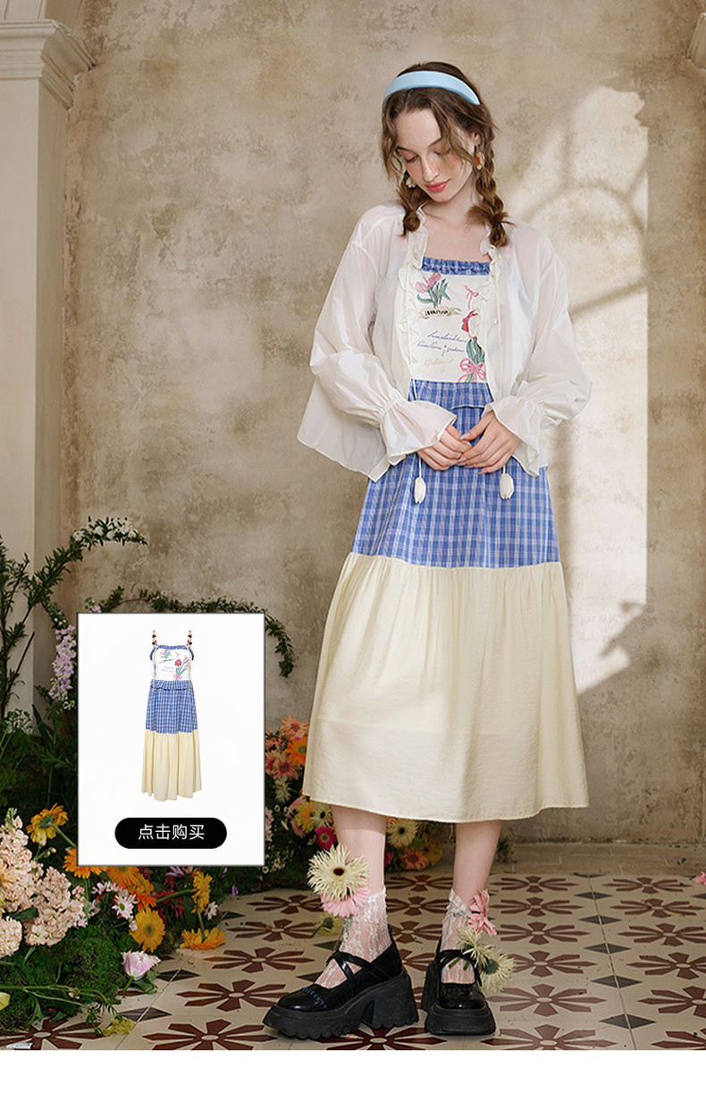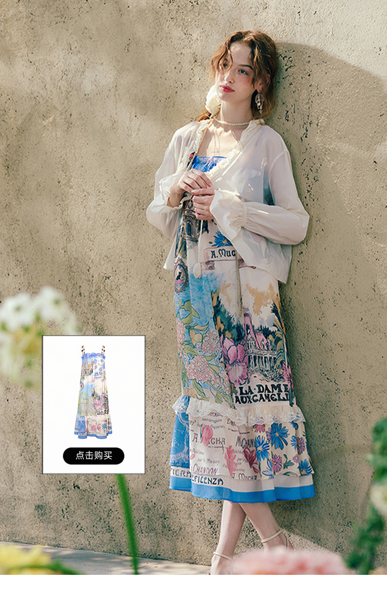 两三事梵高文艺 花屿捕梦 2025夏季新款拼布印花荷叶边吊带连衣裙
