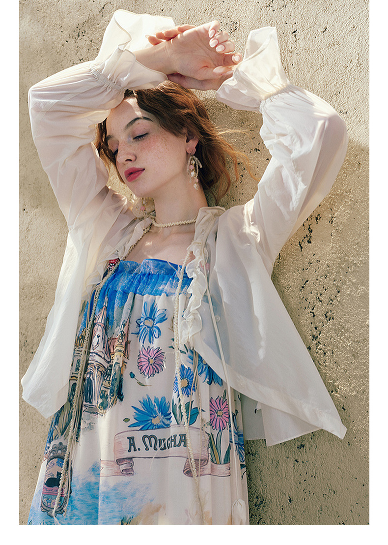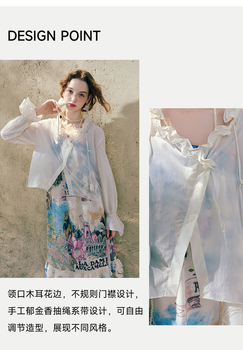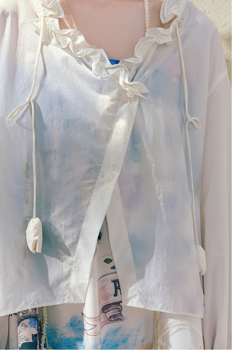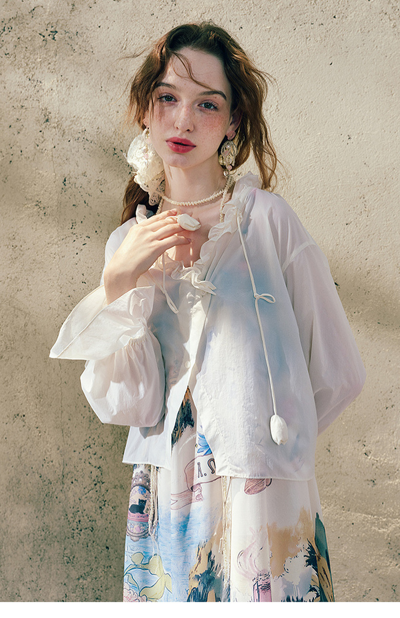两三事 郁香晨露 2025夏季新款小清新荷叶边领郁金香抽绳短外套女