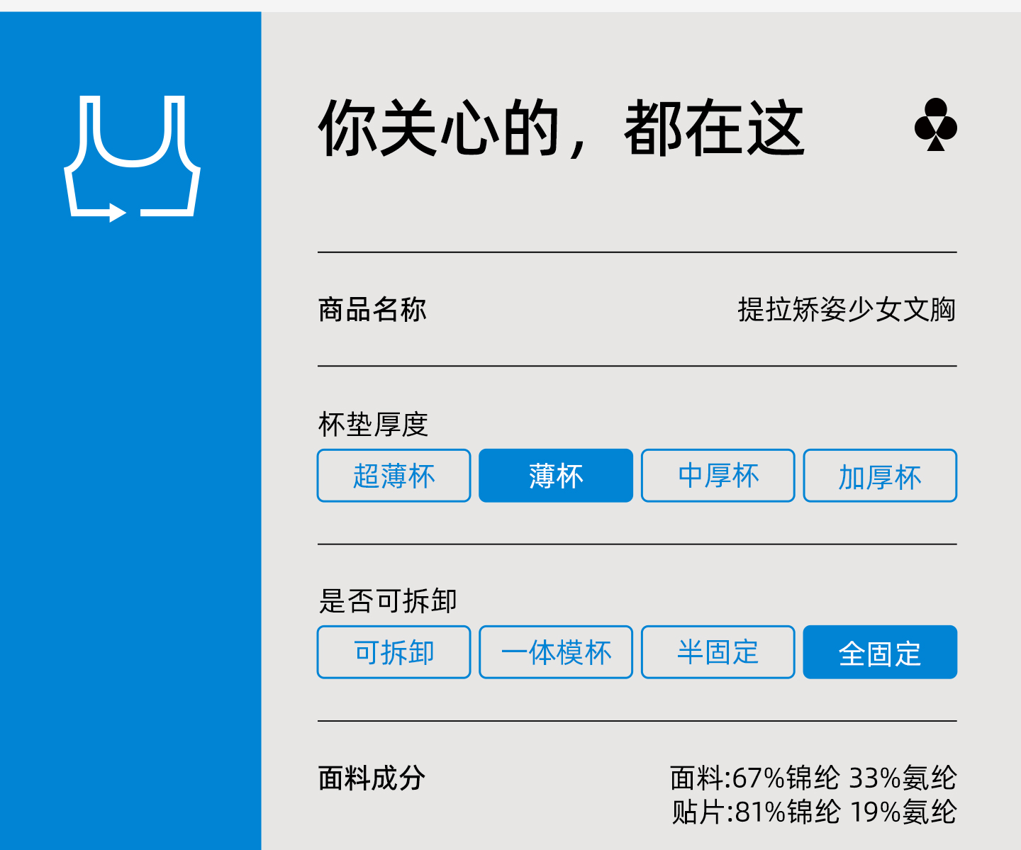有棵树无痕运动防震固定杯少女文胸发育期舒适三阶内衣-BA014