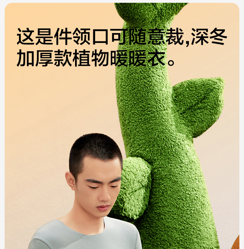 有棵树植物暖暖衣男士圆领秋衣秋裤无痕自发热保暖内衣套装G-DW1004