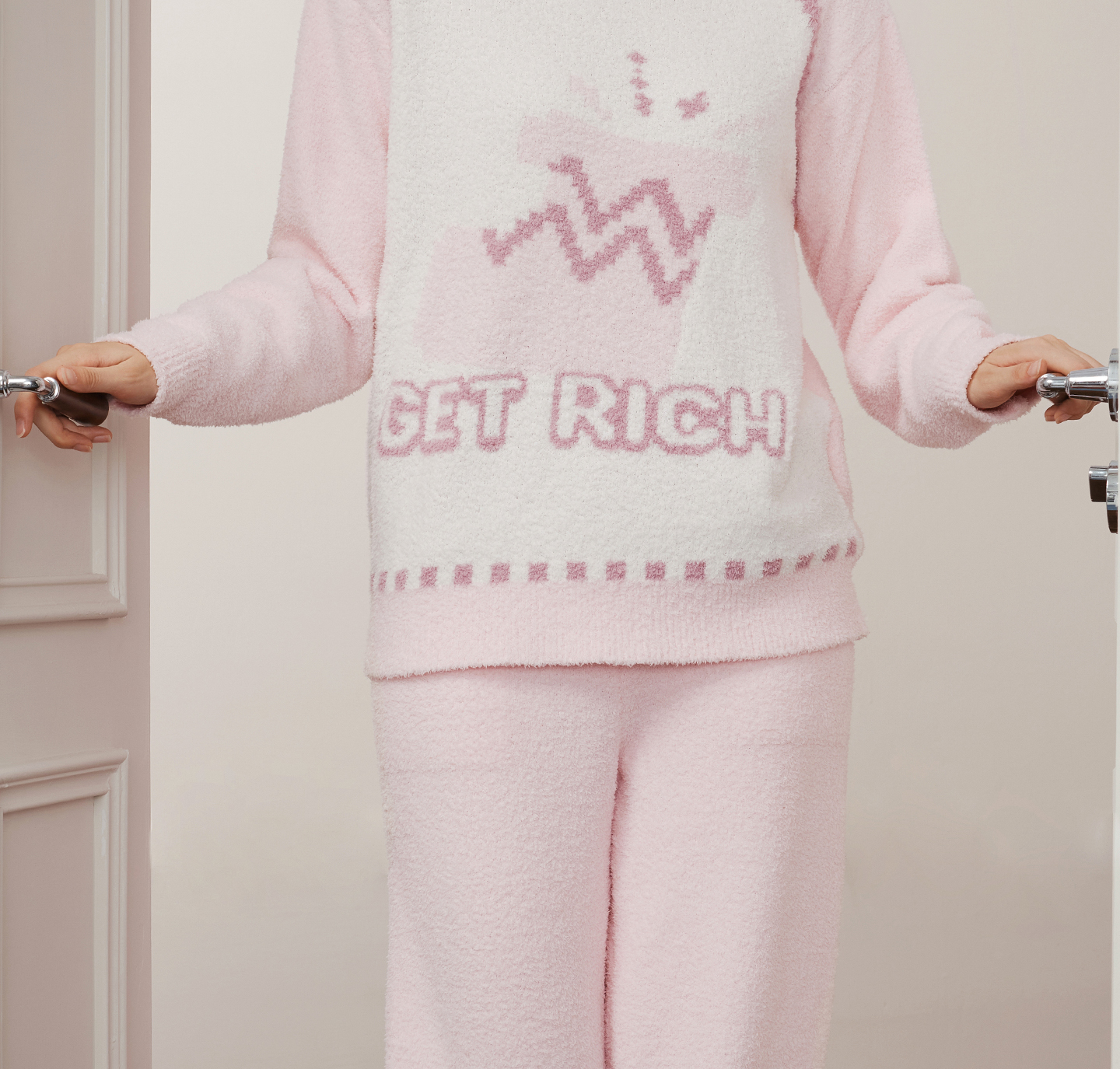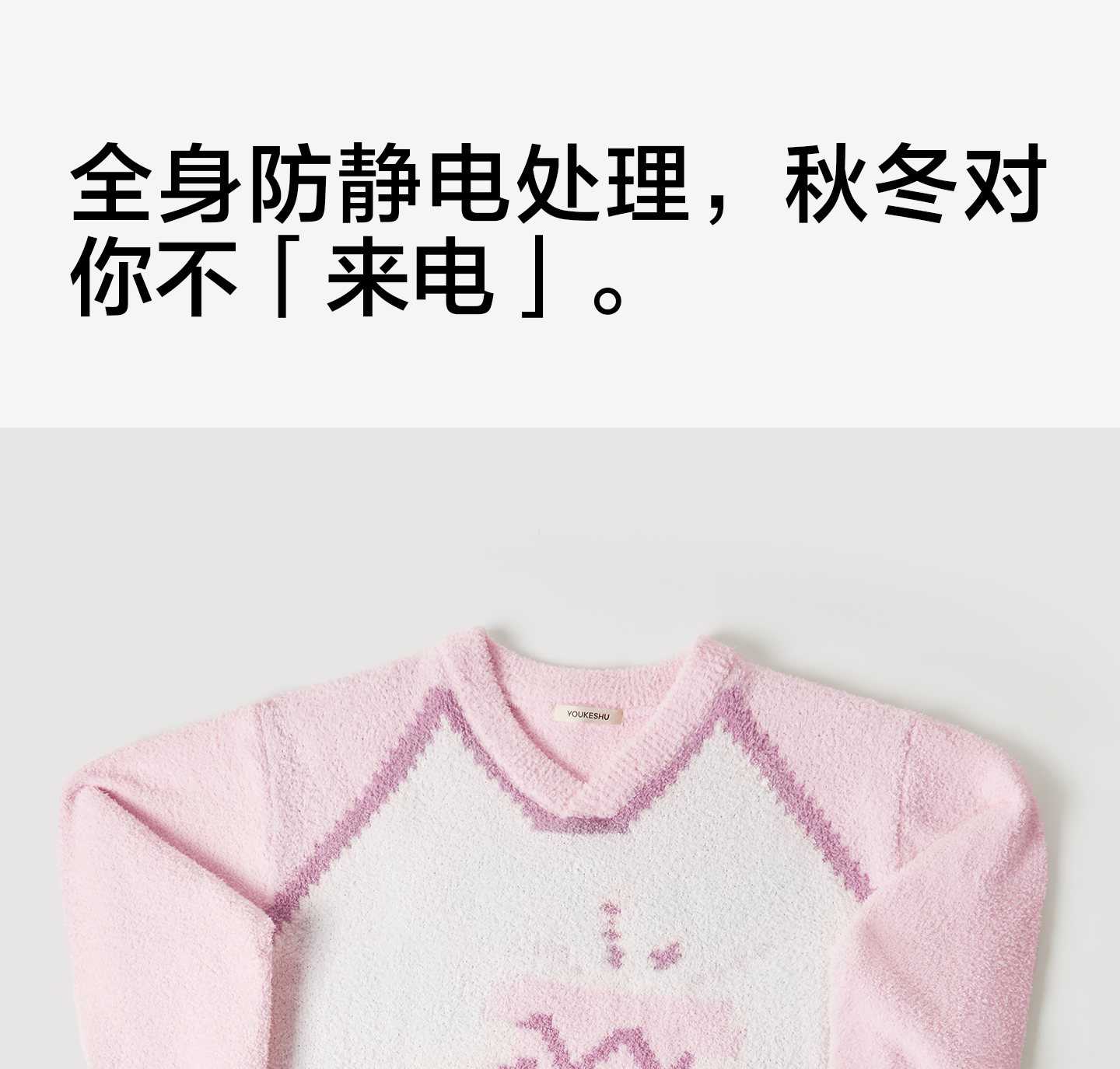 【新品上新】有棵树半边绒抗静电V领套头加厚睡衣女款家居服套装-J1182