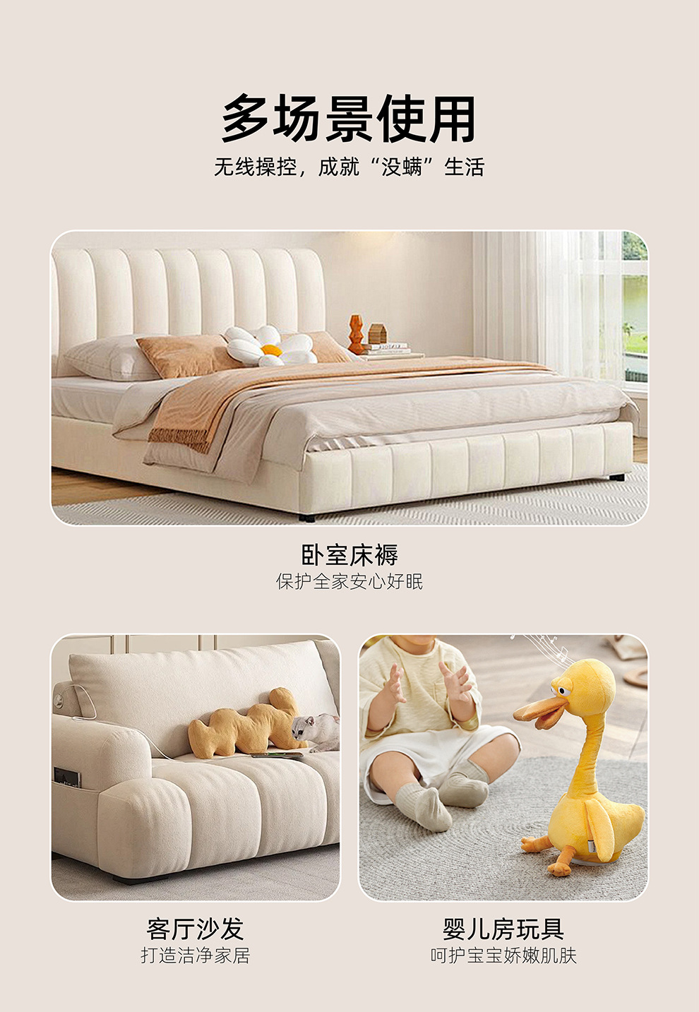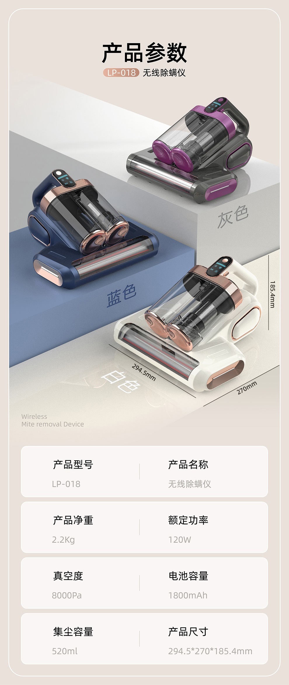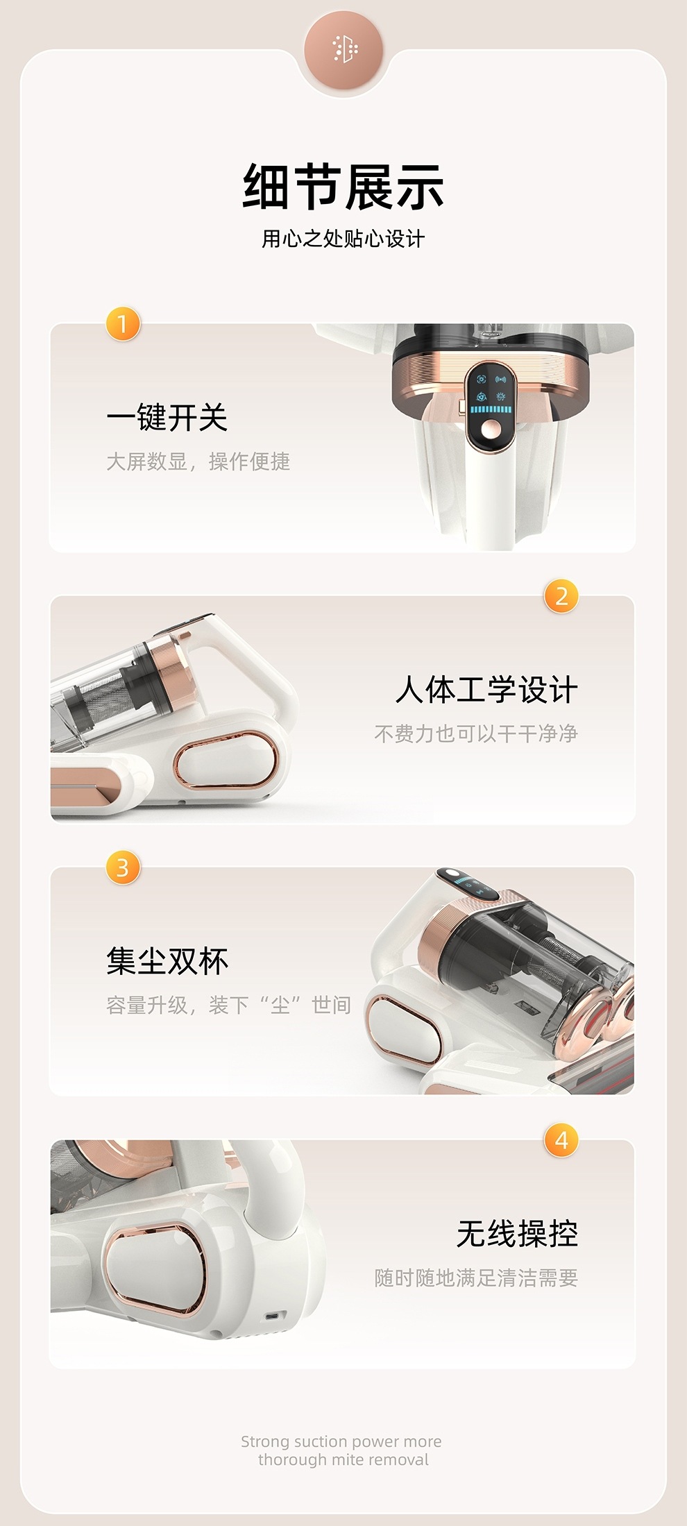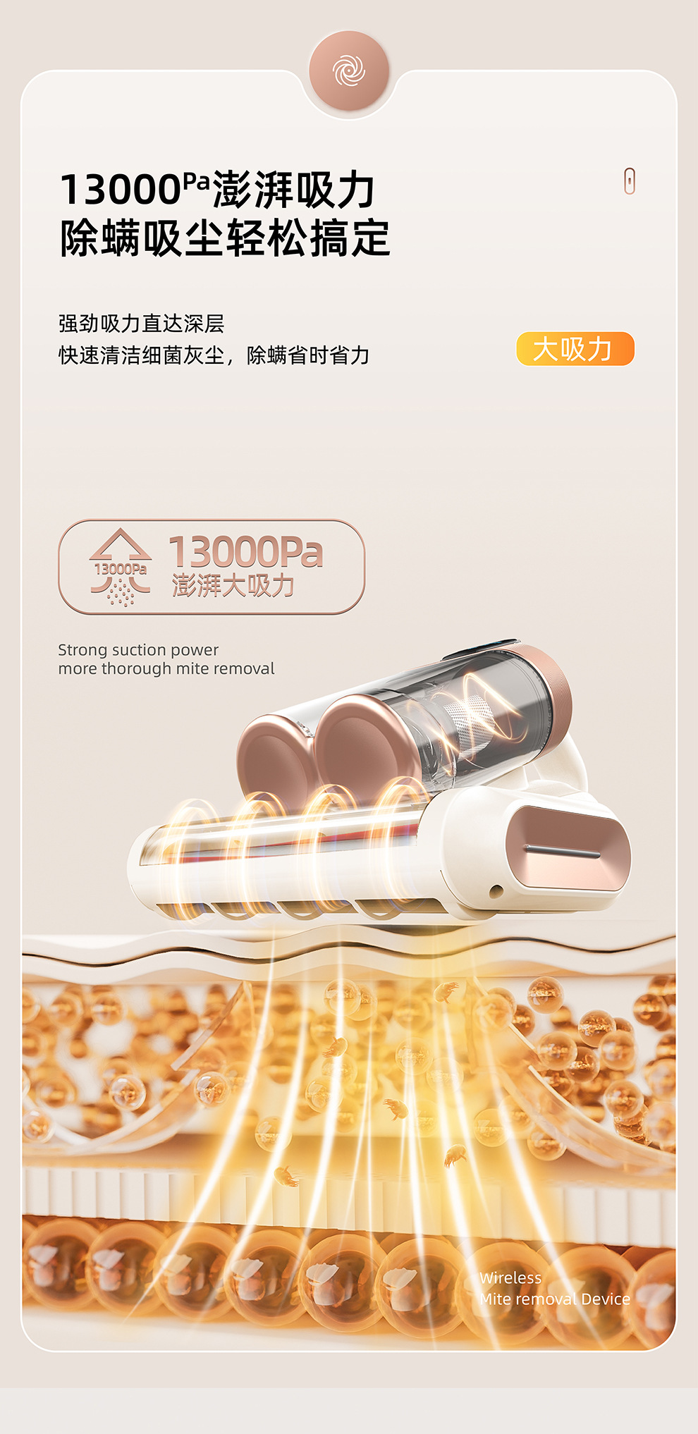 【净螨新科技】LED显示无线除螨仪 大吸力家用床上吸尘器 双尘杯滚刷拍打紫光杀菌机 除螨机