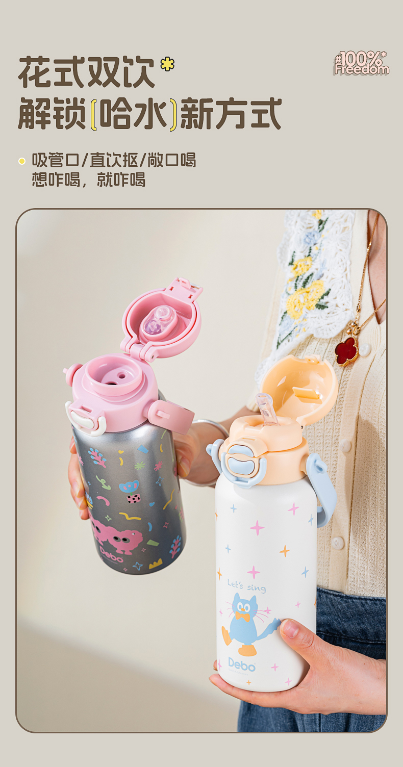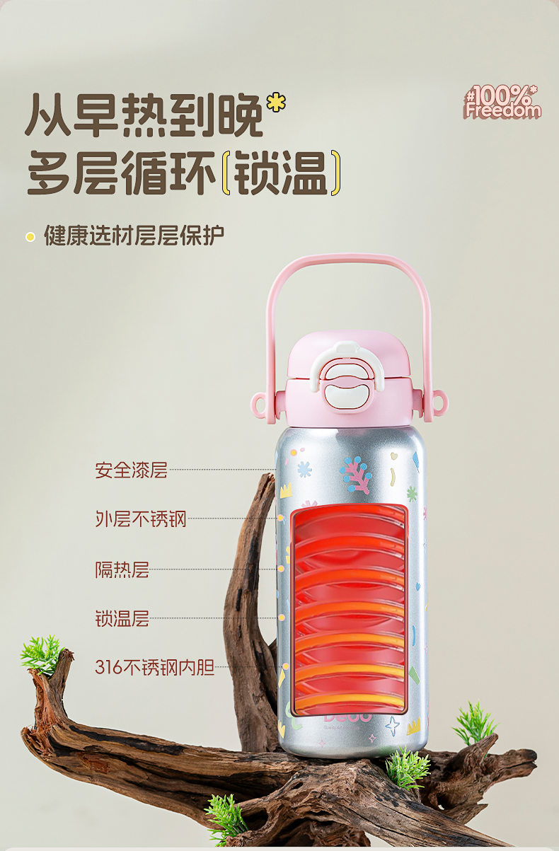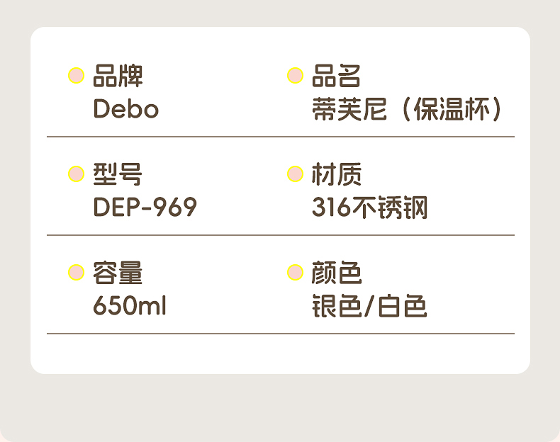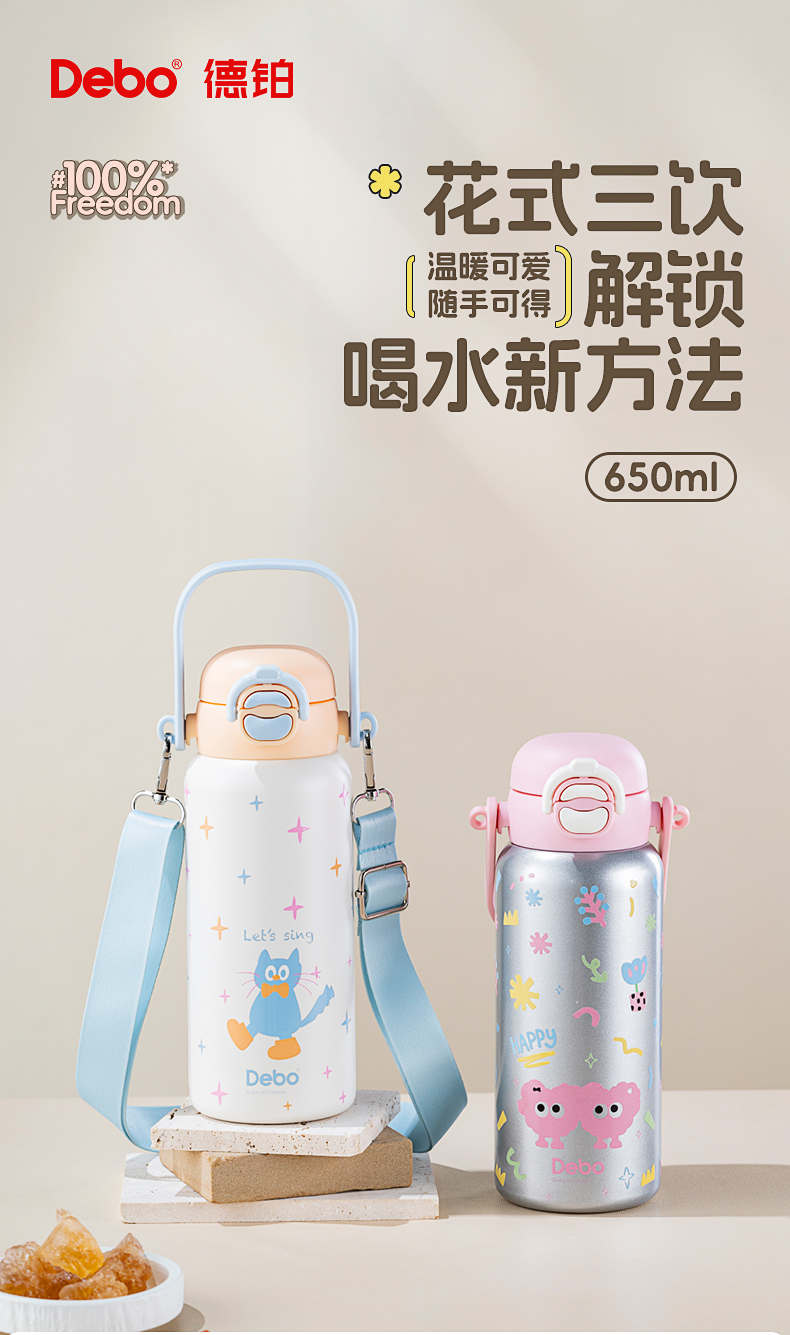 Debo德铂-蒂芙尼保温杯650ml 316不锈钢内胆 安全无异味抗氧耐腐 奶液果汁放心装(配带子)