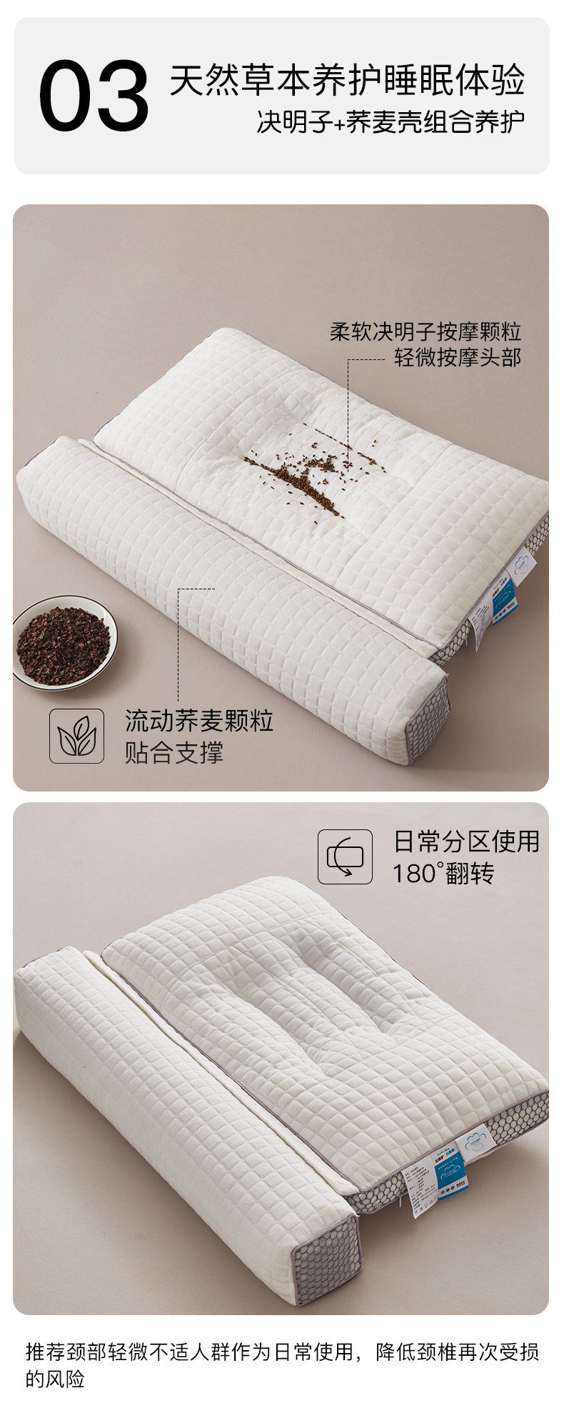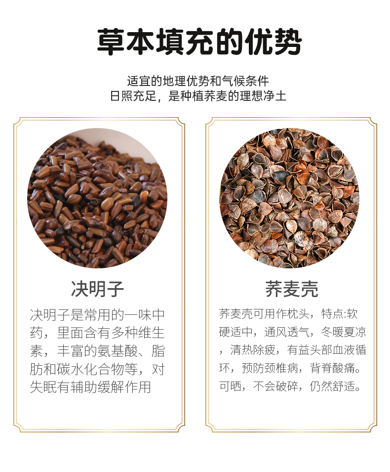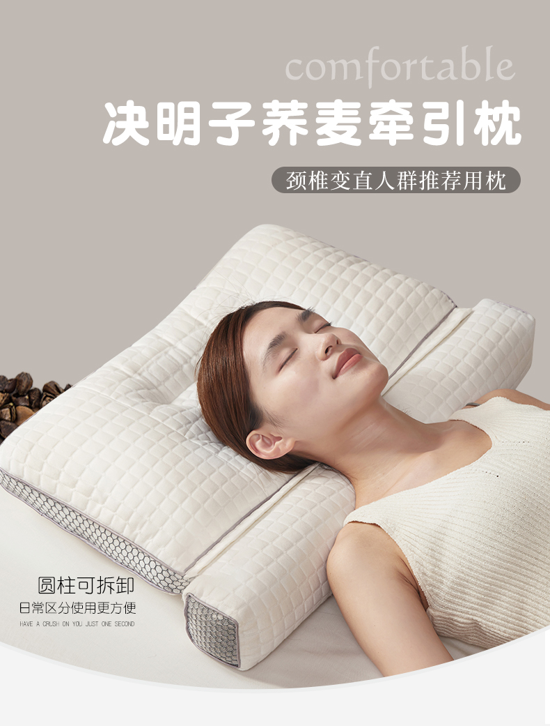自然醒决明子荞麦牵引枕颈椎专用全荞麦壳小枕头护颈椎助睡眠单人圆柱颈椎硬枕睡觉护颈枕XK