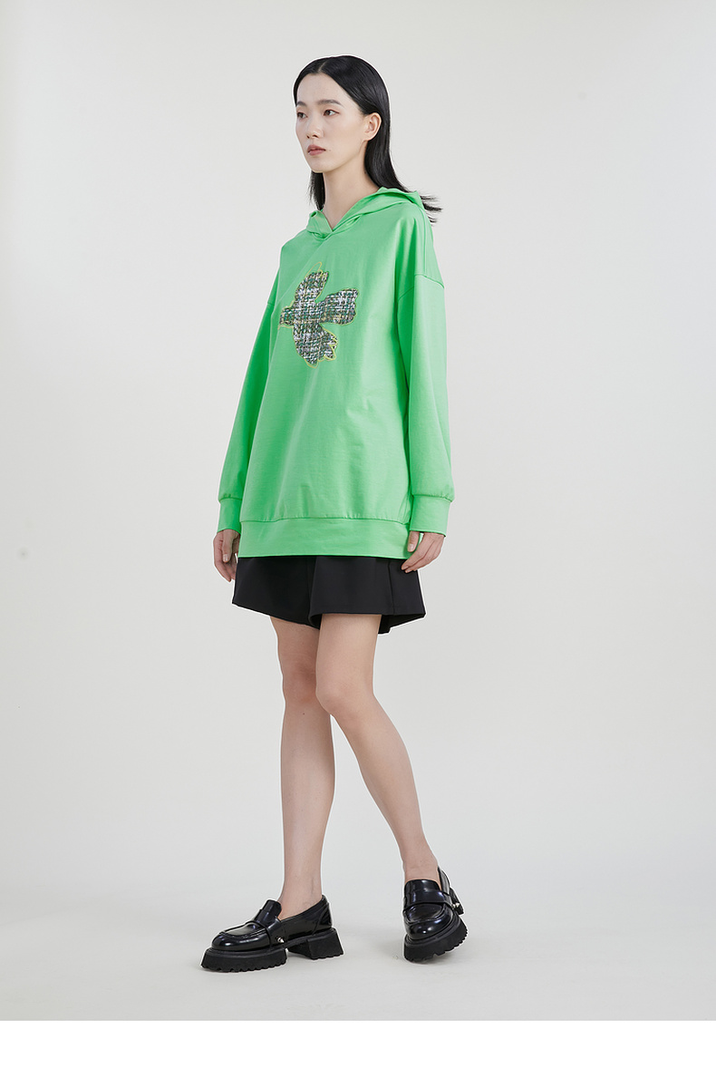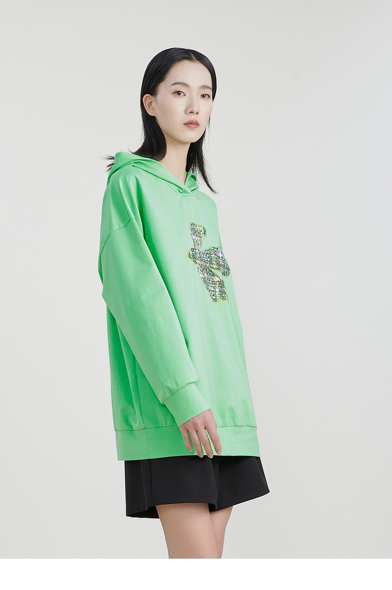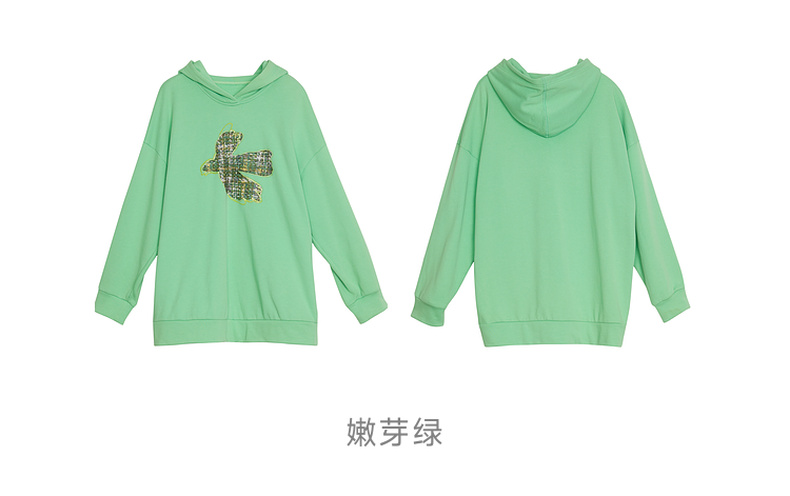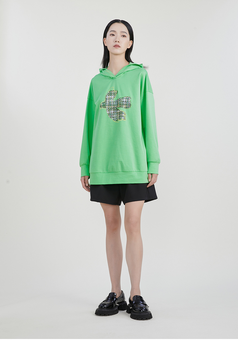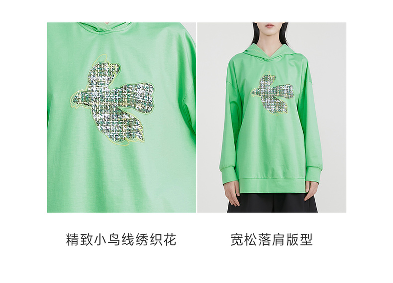 谜底中长款卫衣女23春季新款时尚百搭连帽宽松套头绣花231MV0127