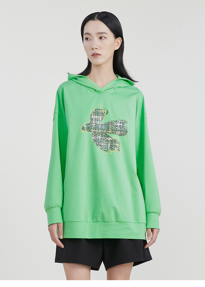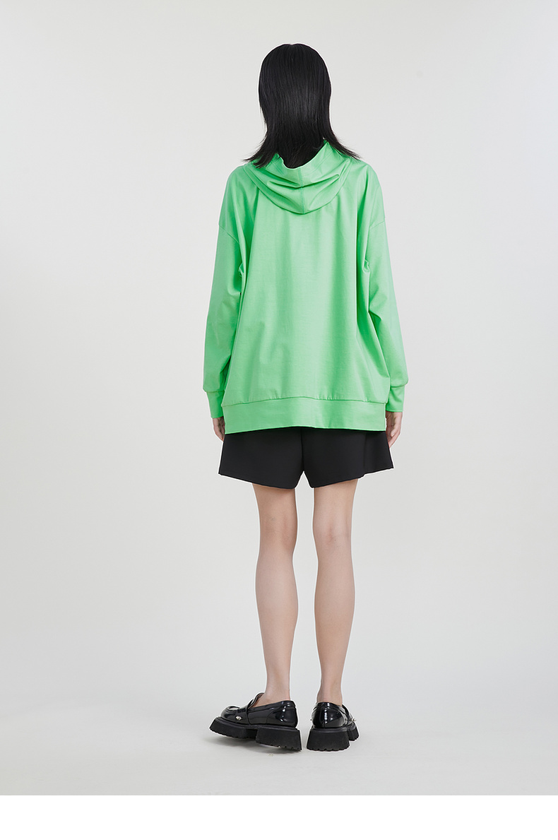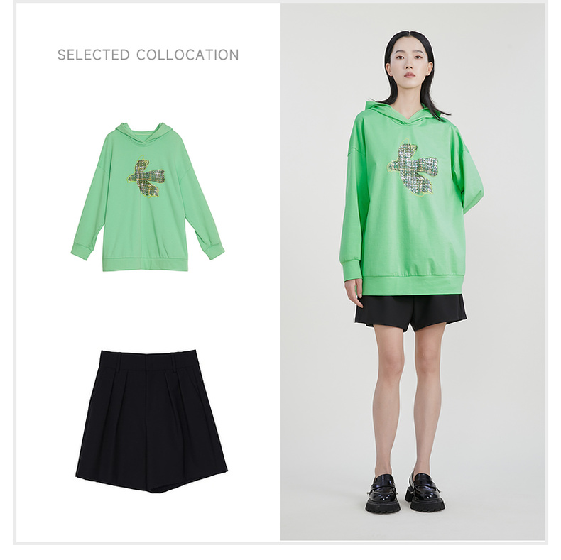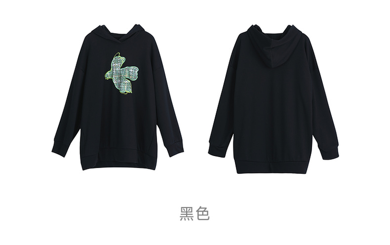 谜底中长款卫衣女23春季新款时尚百搭连帽宽松套头绣花231MV0127
