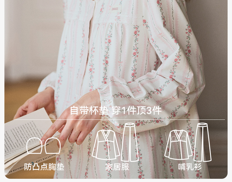 【家居服专场】嫚熙夏季薄款纯棉哺乳衣月子服带胸垫孕妇睡衣产妇产后家居服套装
