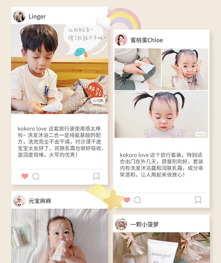 【Kokorolove初葆】婴幼儿旅行套装洗发沐浴二合一+润肤乳霜旅行小样