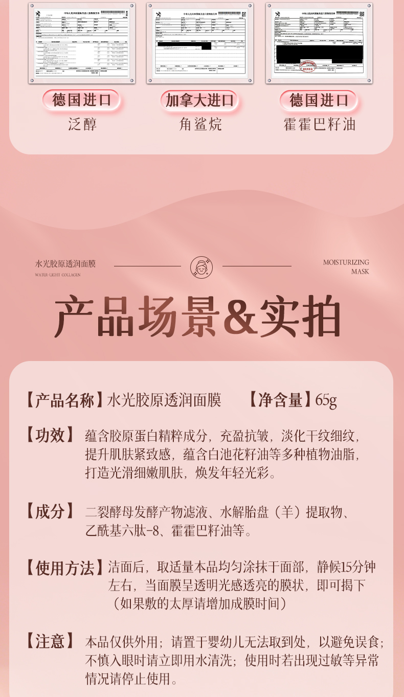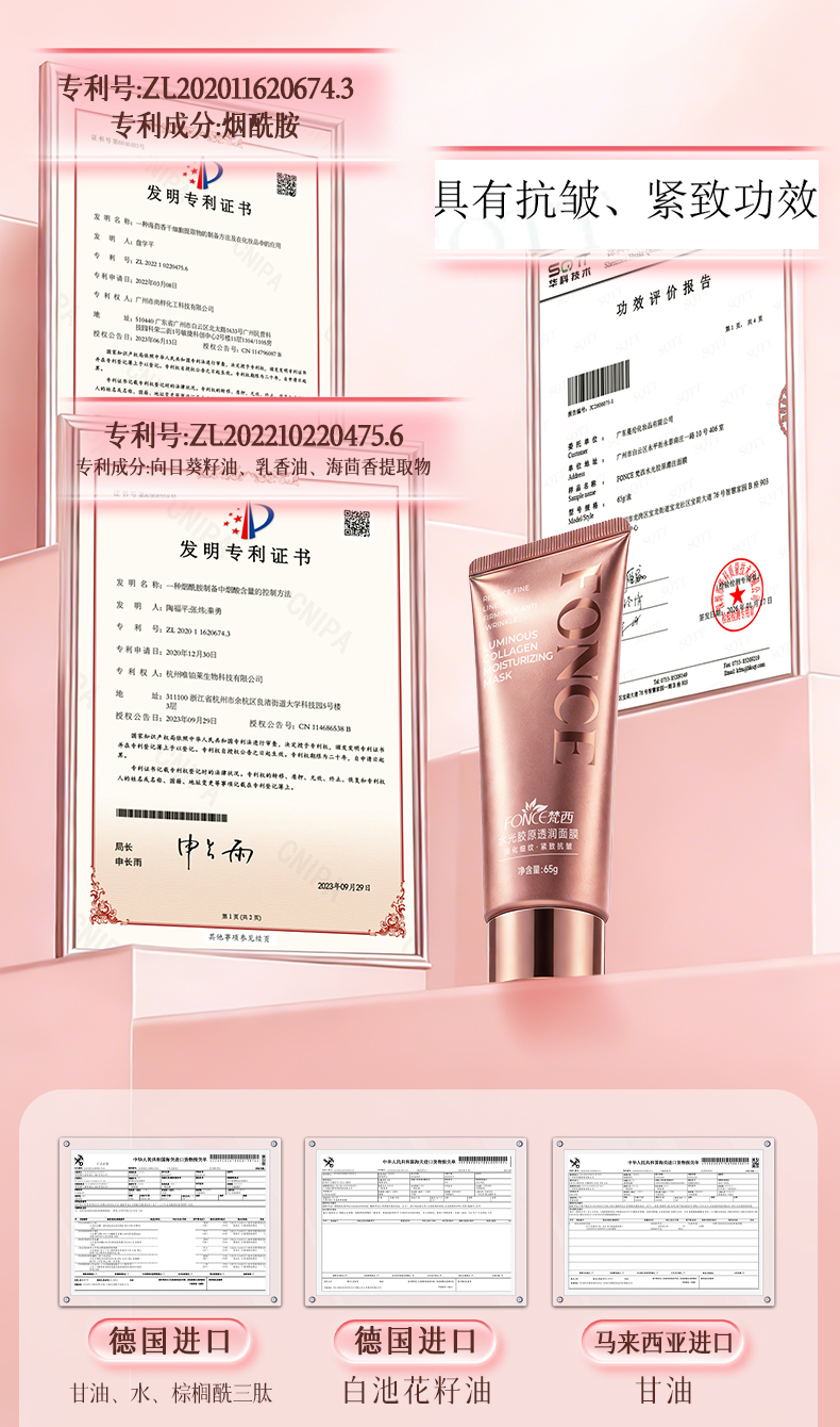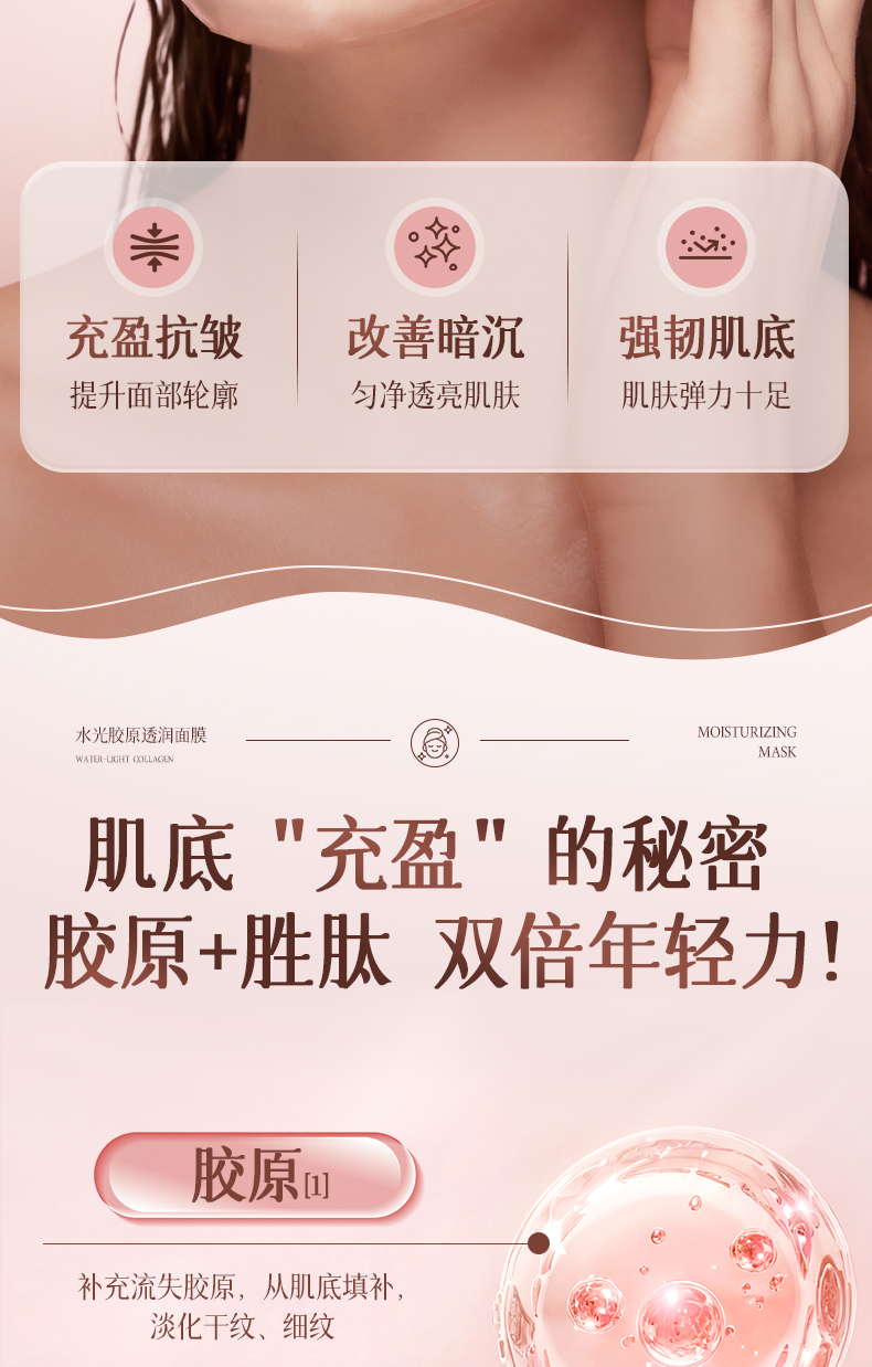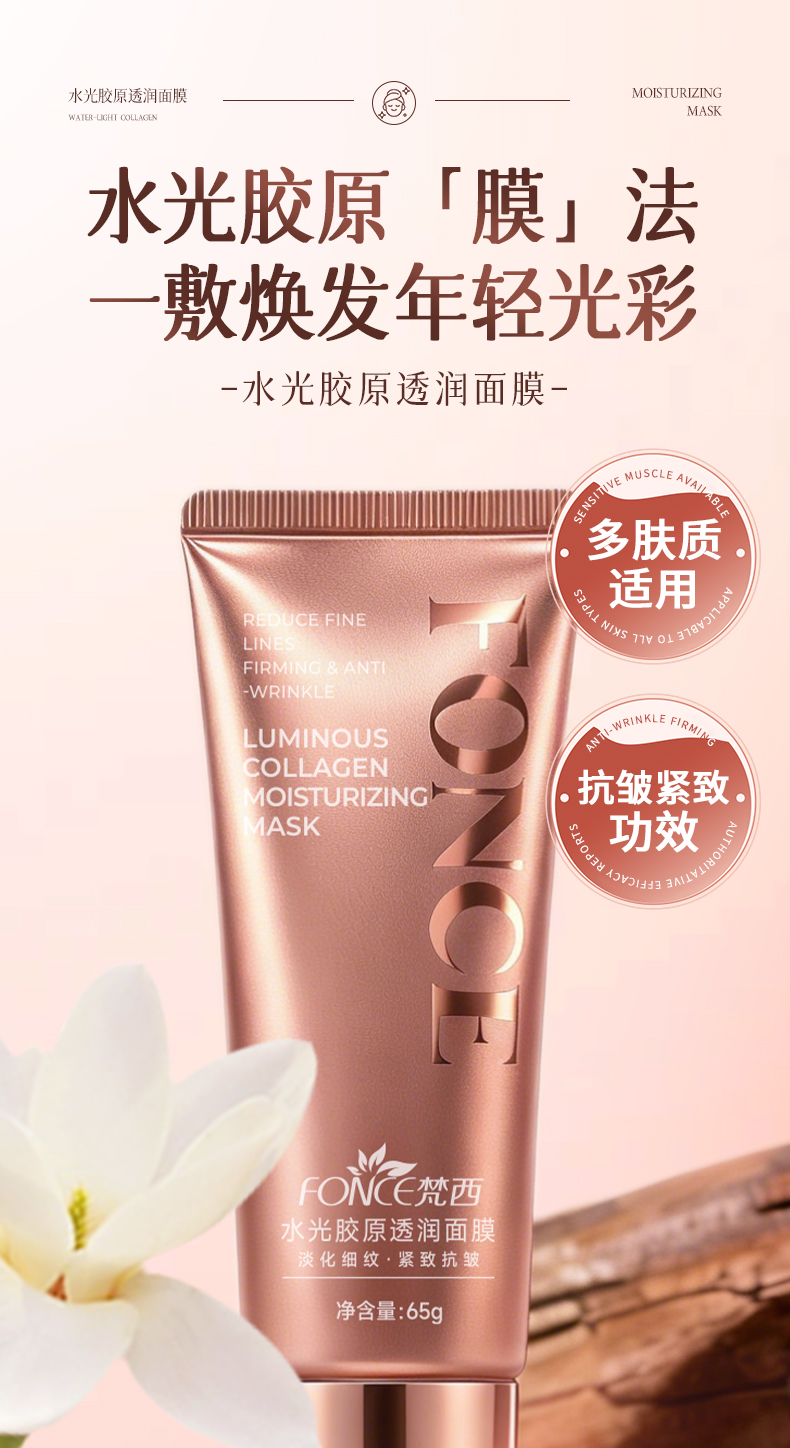 梵西水光胶原透润面膜紧致抗皱改善暗沉补水玫瑰胶原 65g/支