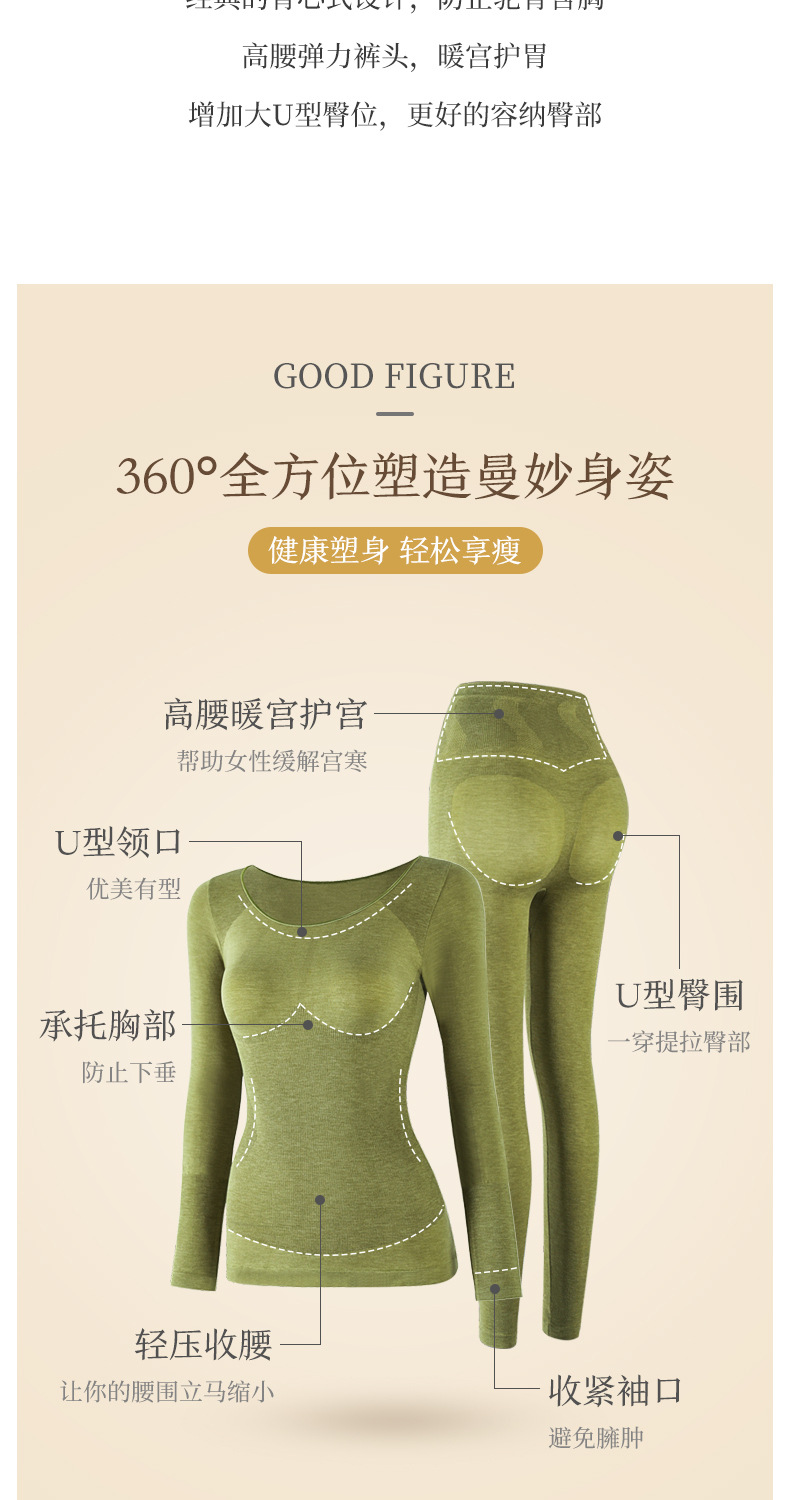 【秋冬不再寒冷,一秒穿出S型!】薄款紧身内衣女,发热保暖衣从此成为你的新宠,无痕圆领设计让你零负担。让美丽与舒适并存,塑身秋衣秋裤套装,给你带来温暖的同时展现迷人曲线!