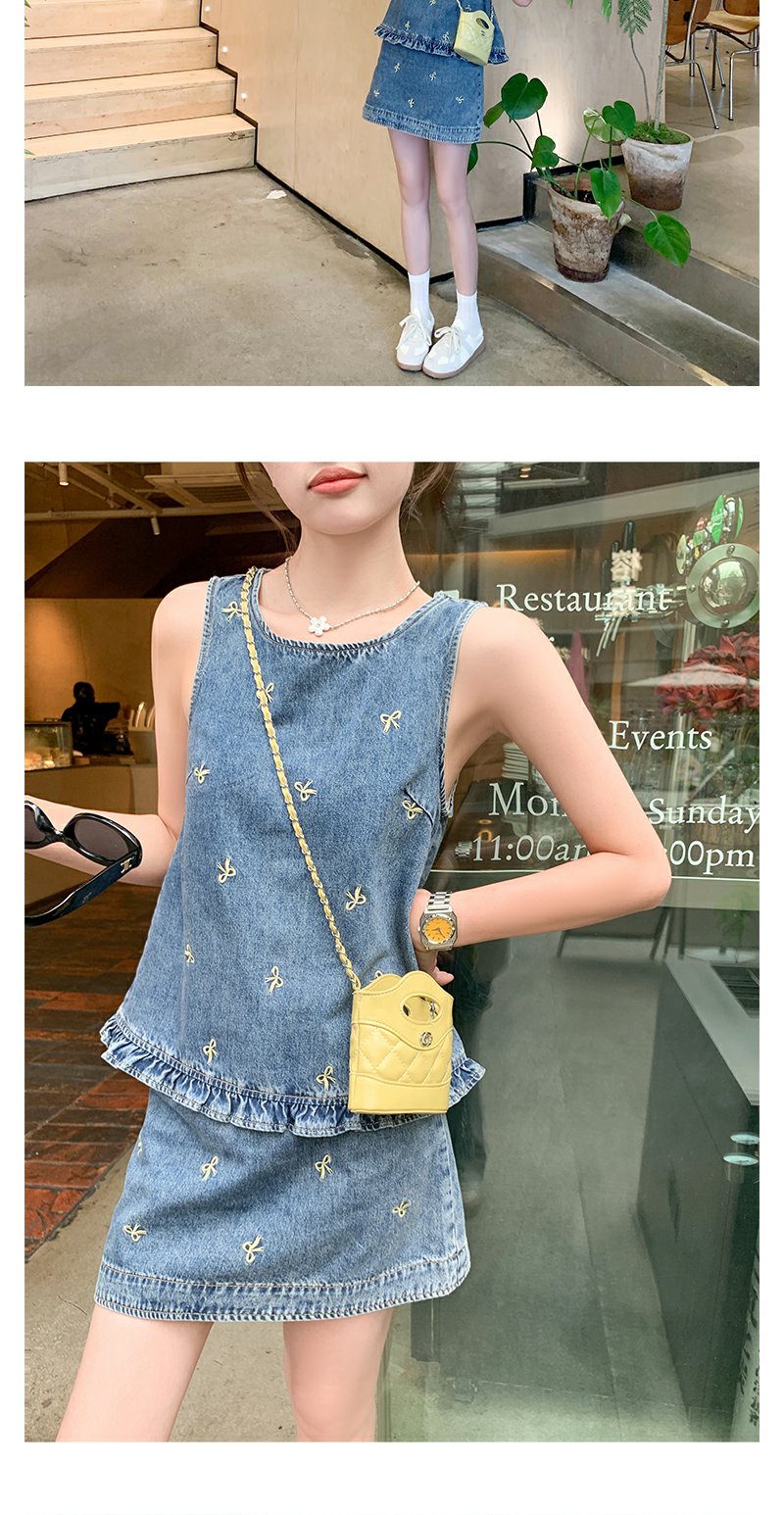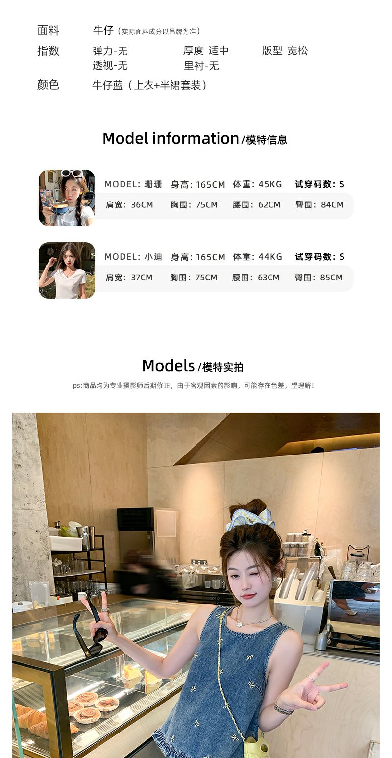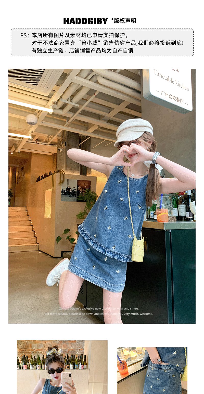 <曾小咸推荐>现货秒杀!最后一波 !法式蝴蝶结刺绣牛仔背心半身裙两件套 日常319.99 立减180 秒杀139.99!