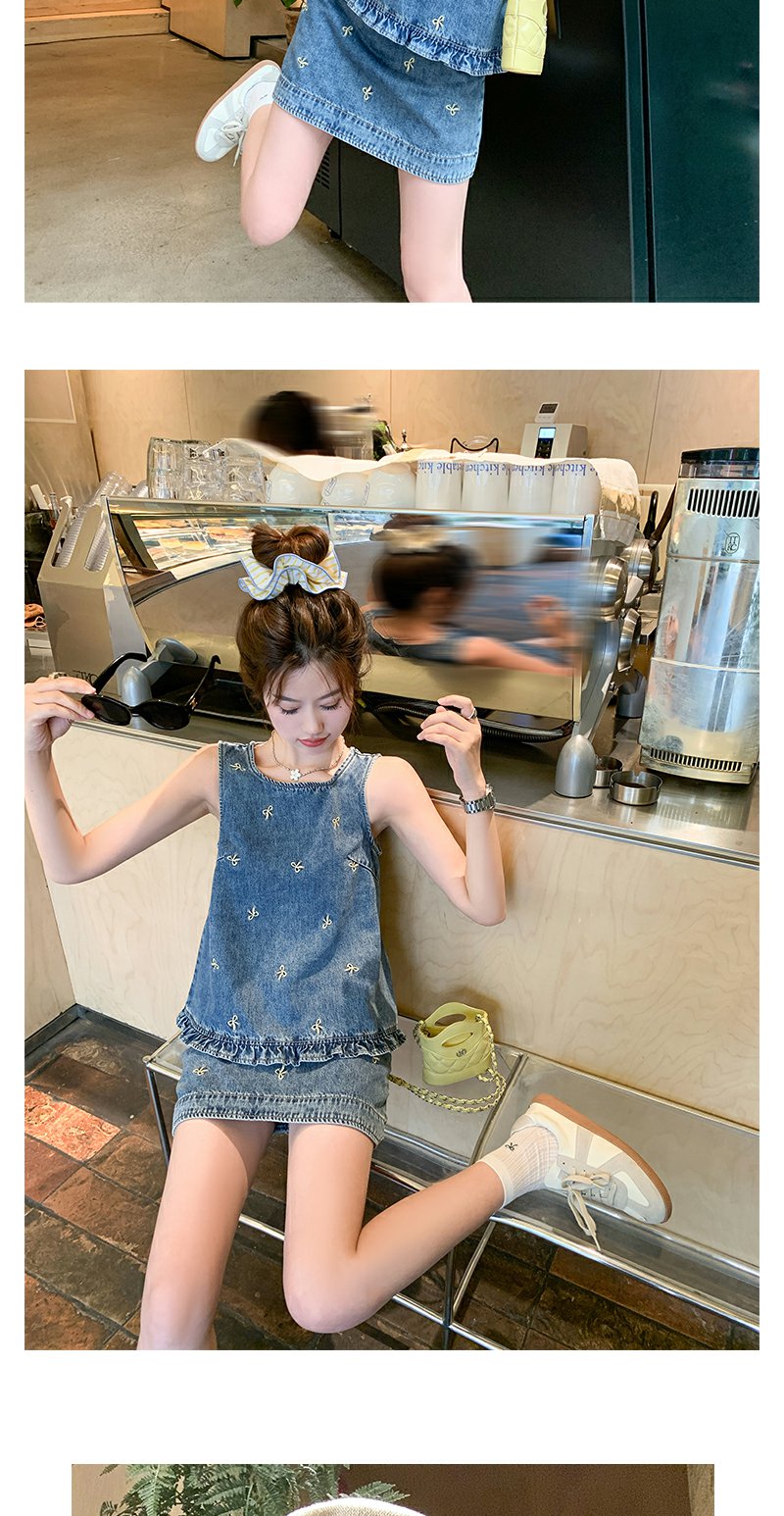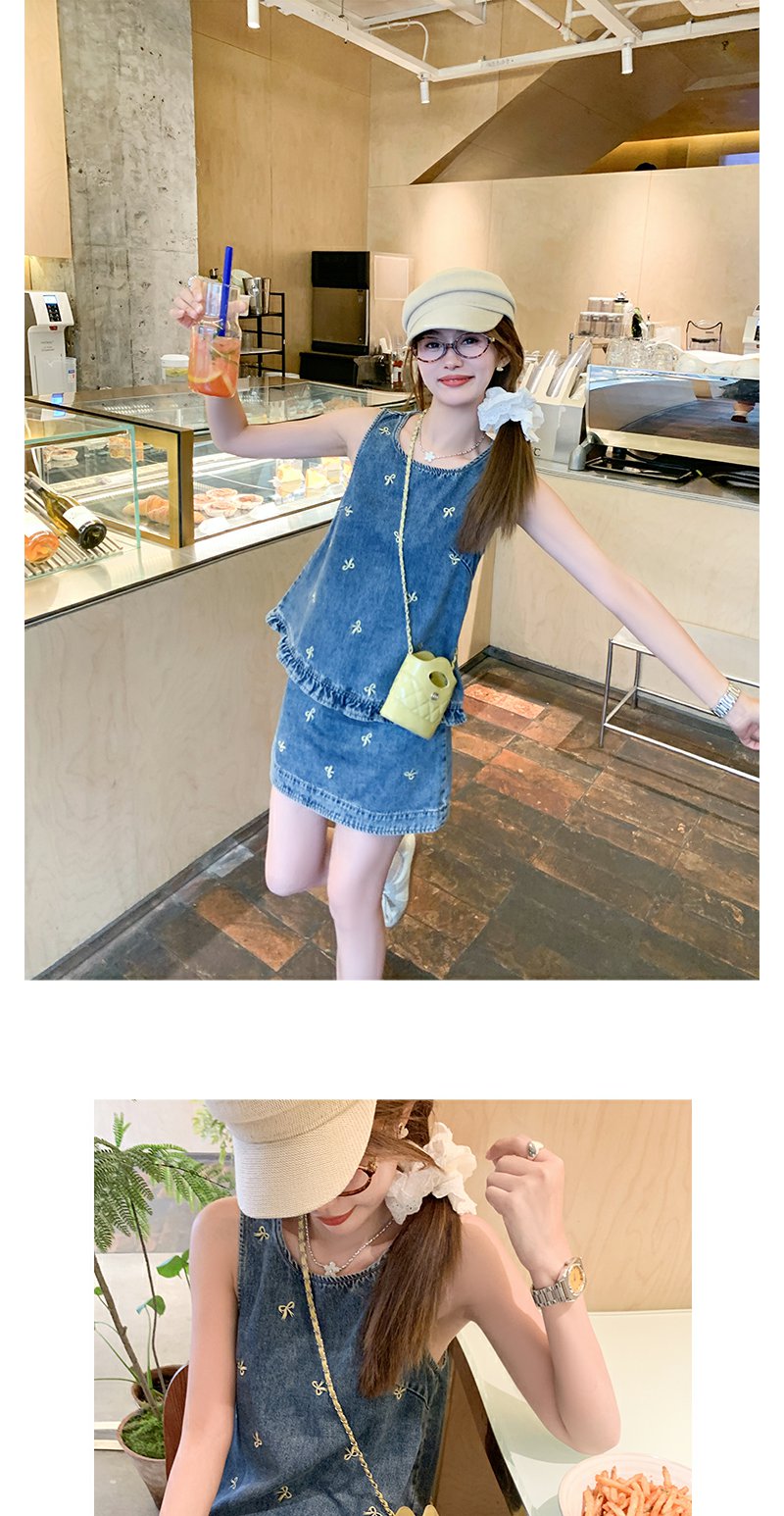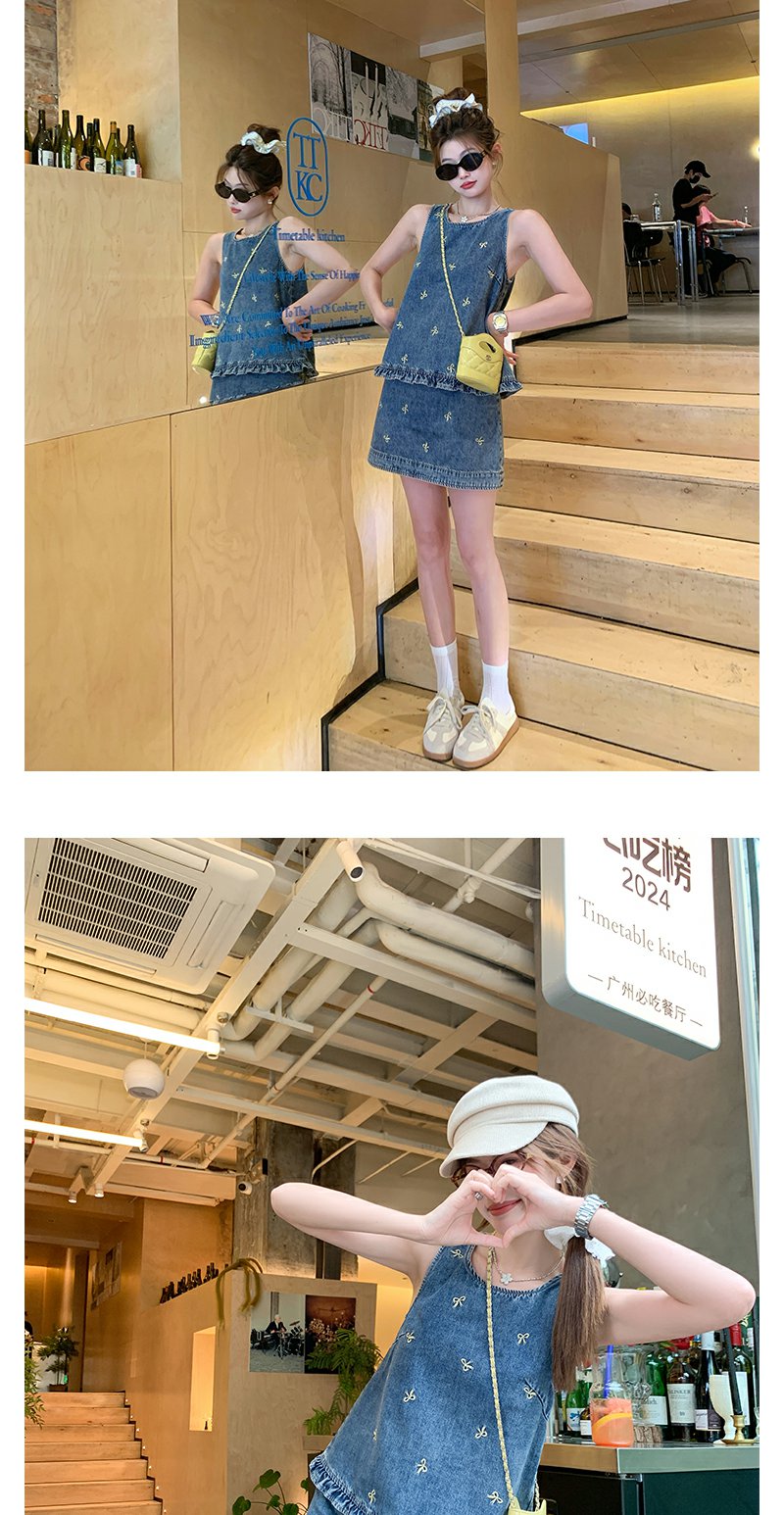 <曾小咸推荐>现货秒杀!最后一波 !法式蝴蝶结刺绣牛仔背心半身裙两件套 日常319.99 立减180 秒杀139.99!