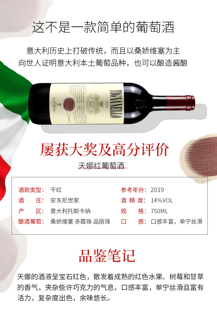 Tignanello意大利安东尼世家天娜红葡萄酒2019