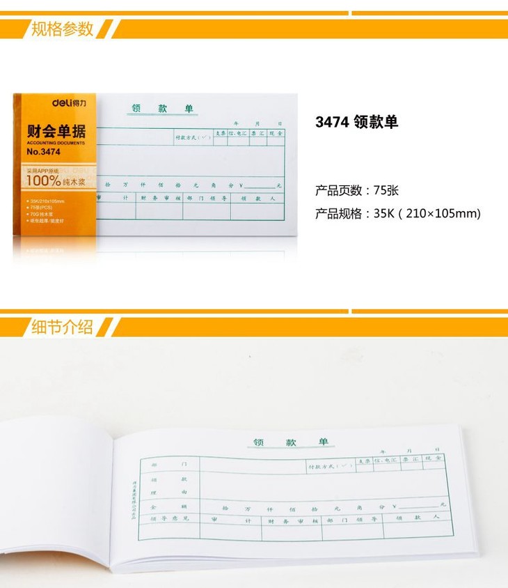 得力3474领款单3474(白色)