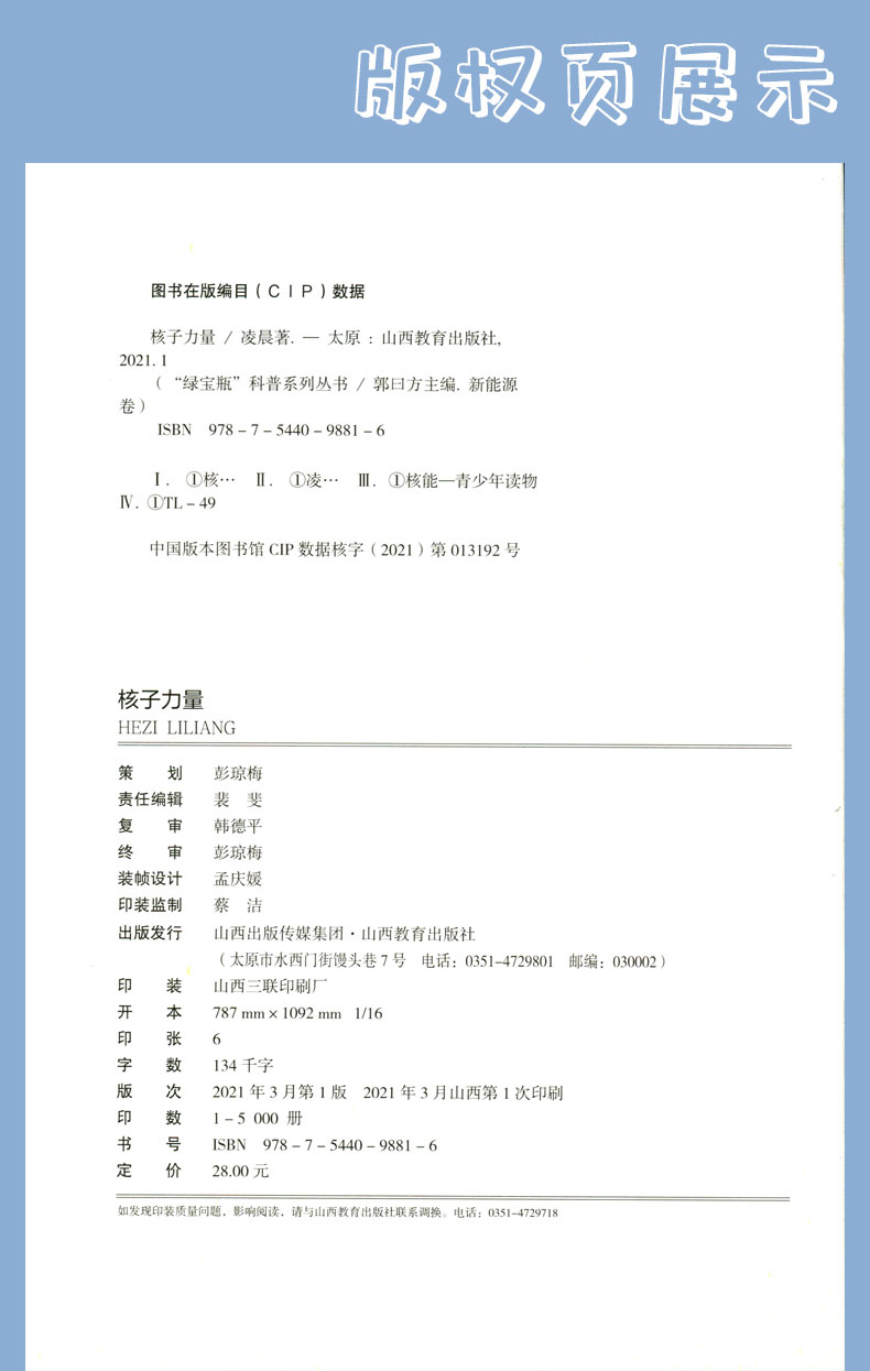 新版 少儿读物 绿宝瓶科普系列丛书 核子力量