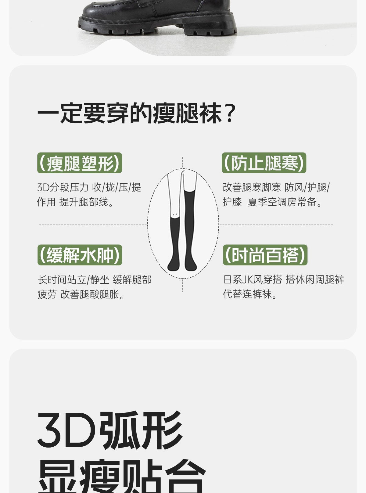 袜子女秋冬纯棉吸汗学院风jk袜长筒袜纯色瘦腿压力小腿袜 商品图7