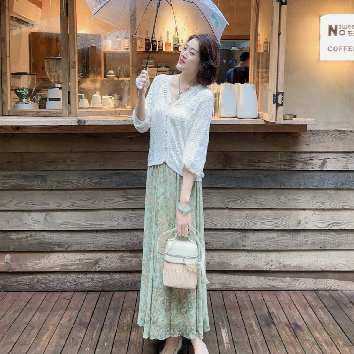 火桐hooton铂金系列 吉维尼花园 双层真丝乔其半身裙YT1039